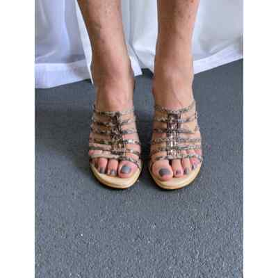 80s Luisa D'orio VTG Strappy Faux Snake Wedge Mule w/ Pink Jewel Feature, Made in Italy 7.5- guessing the size per the foot of the model. They might be narrow, too. Use measurements.All man-made materials are in near-new condition.