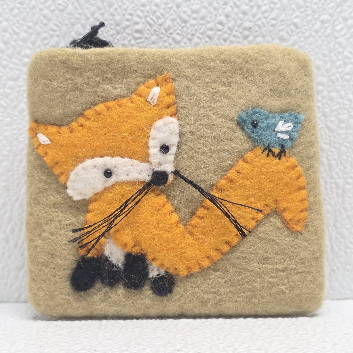 Wild Woolies Wool Felt Coin Purse Fox Blue Bird New With Tag 4" x 5". Images show actual item that will ship.
