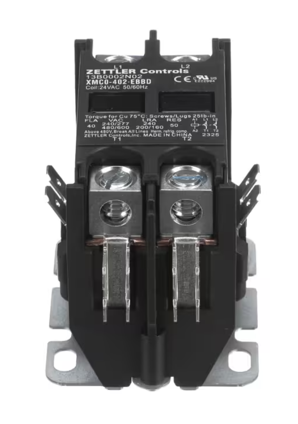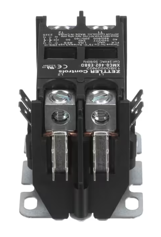 ClimateMaster 13B0002N02 / XMC0-402-EBBD Contactor is a 2 pole electrical contactor designed for commercial and residential HVAC systems requiring reliable low-voltage control. Featuring a 24 Volt coil with 50/60HZ compatibility and rated at 40 Amps, this contactor ensures stable electrical switching and dependable performance in demanding heating and cooling applications. Ideal for replacement or maintenance to restore proper system operation and electrical safety.