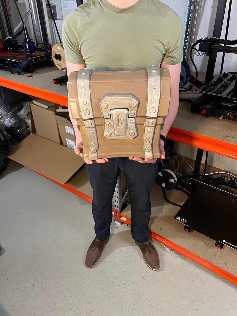 Bring the thrill of looting to real life with this life-size 3D-printed loot chest! Perfect for gamers, collectors, and fans of the Battle Royale experience, this crate is an epic addition to your collection, cosplay setup, or game room decor.