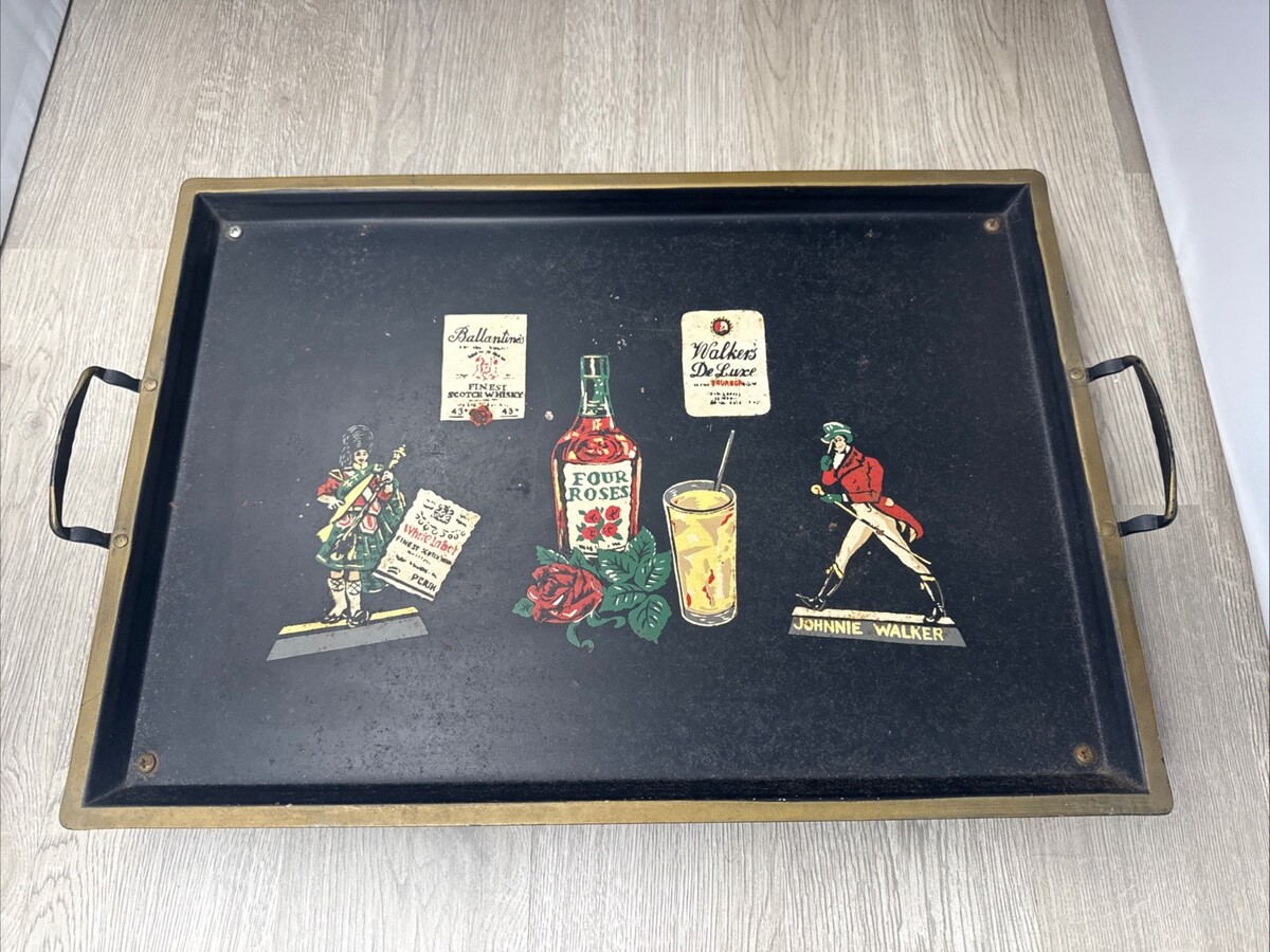 Vintage Johnnie Walker Four Roses Serving Tray Music Box Advertisement JD