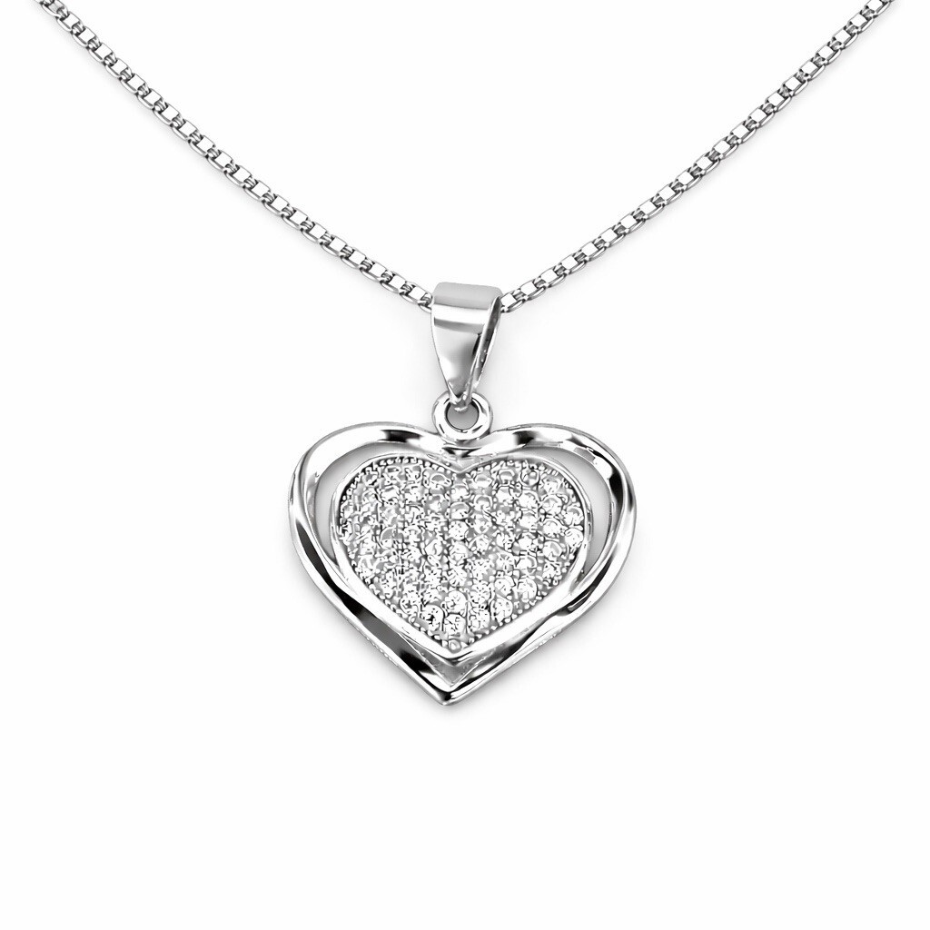 Stamped 925 Sterling Silver Heart Pendant Necklace - Box Chain