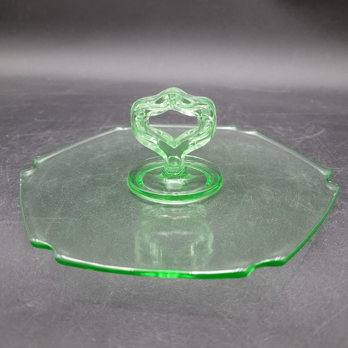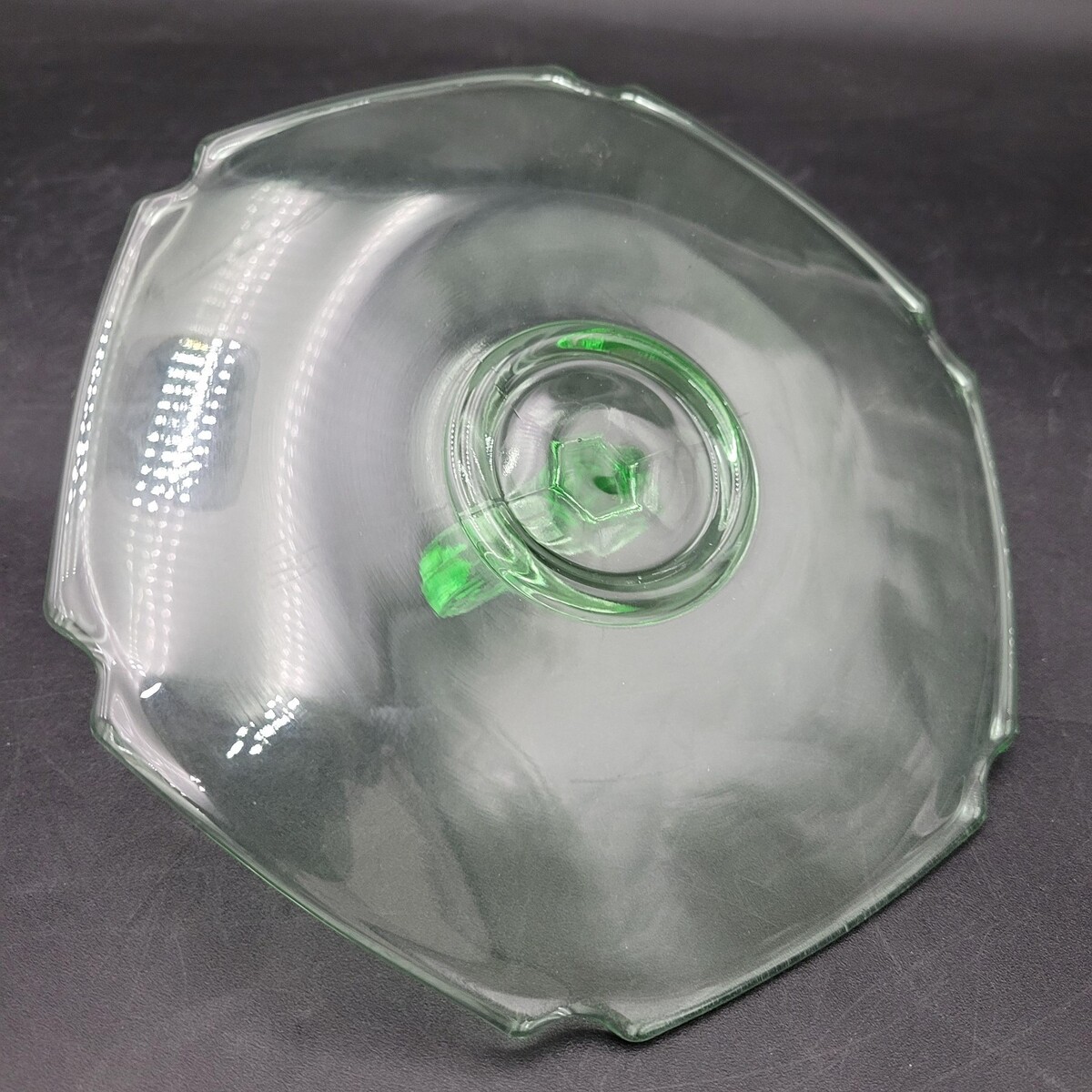 Vintage L.E. Smith Glass Mt. Pleasant Green Uranium Glass Trinket Dish w/Handle