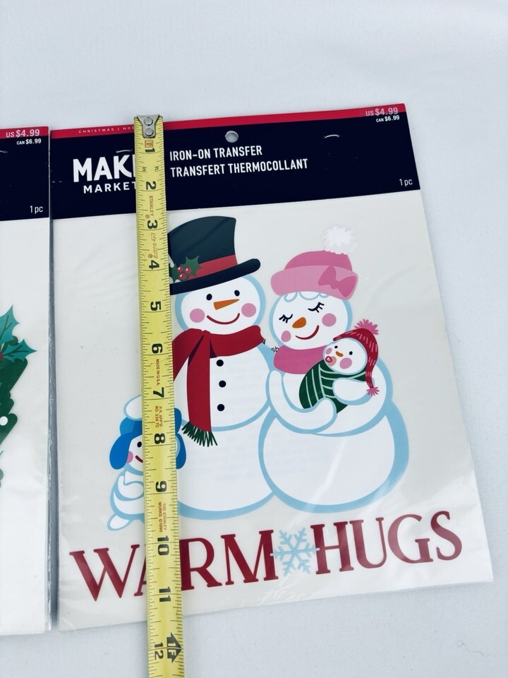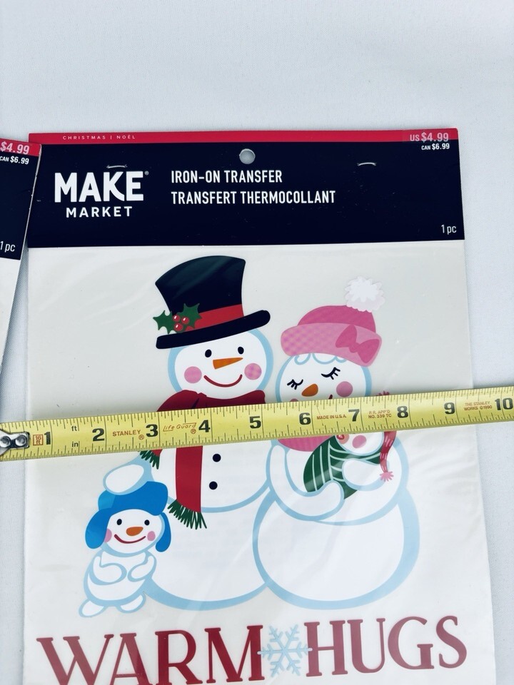 Lot 2 Christmas Iron-on Transfers -Snowman Wreath - DIY Crafts - Hugs Merry