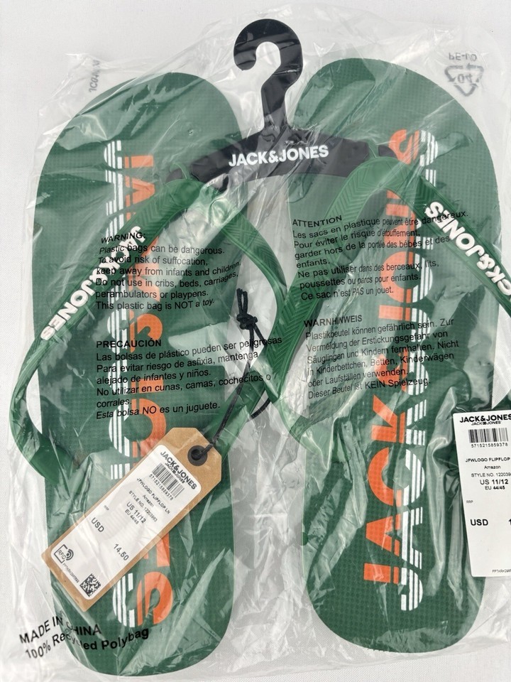 JACK & JONES Premium Flip Flops Sandals Amazon Green Orange Logo Size 11/12