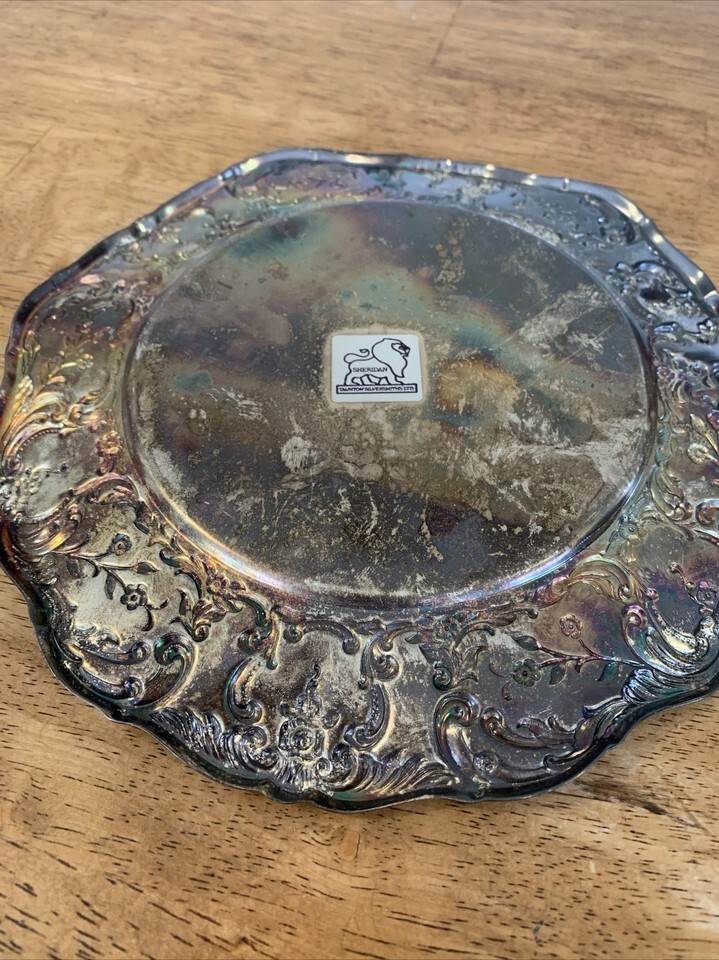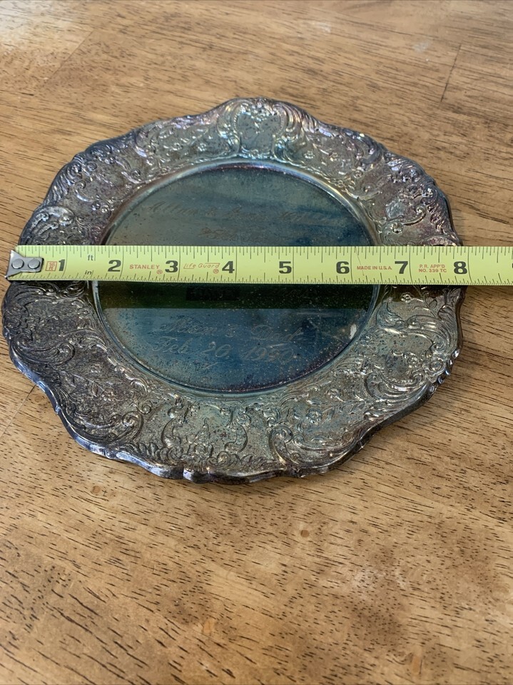 Sheridan Silversmith Taunton Plate Engraved Embossed Platter Trinket Tray Silver