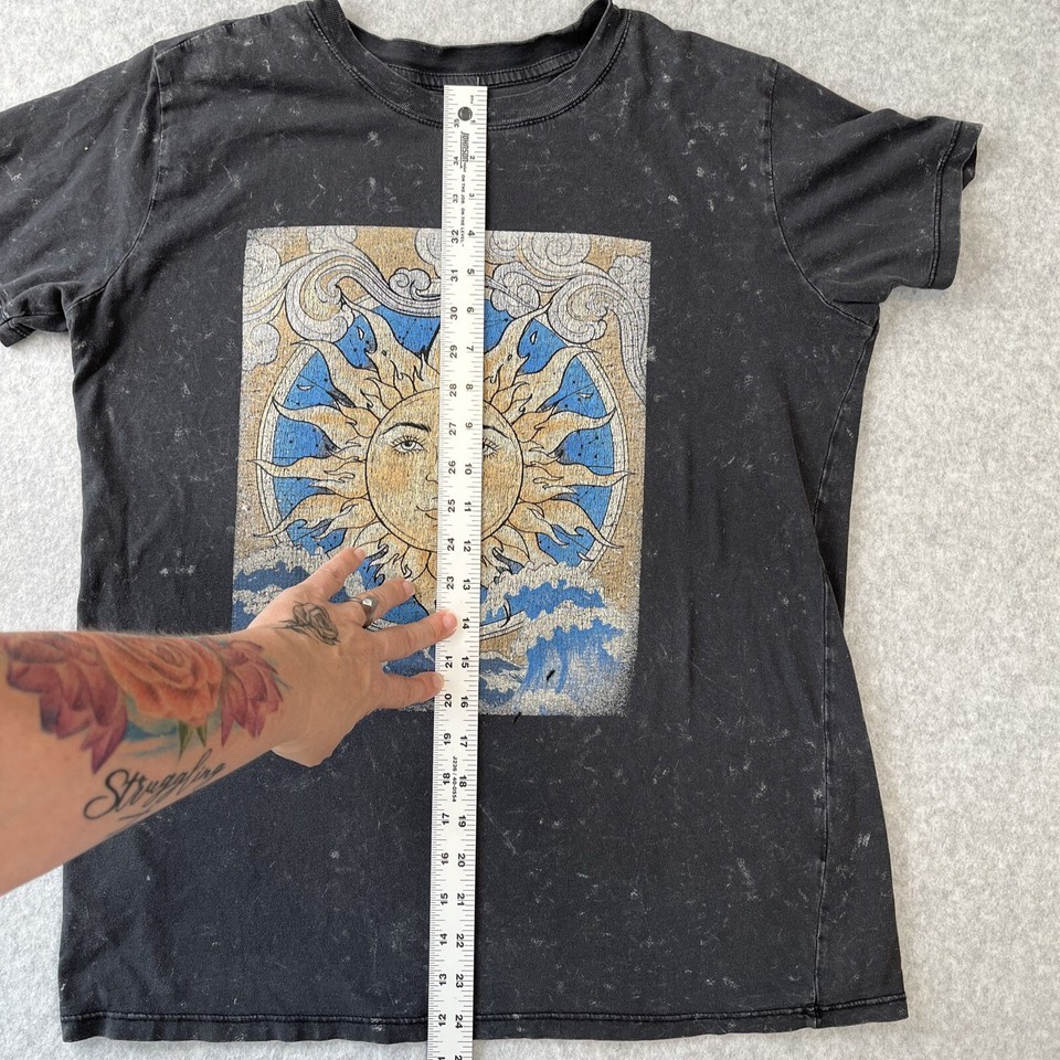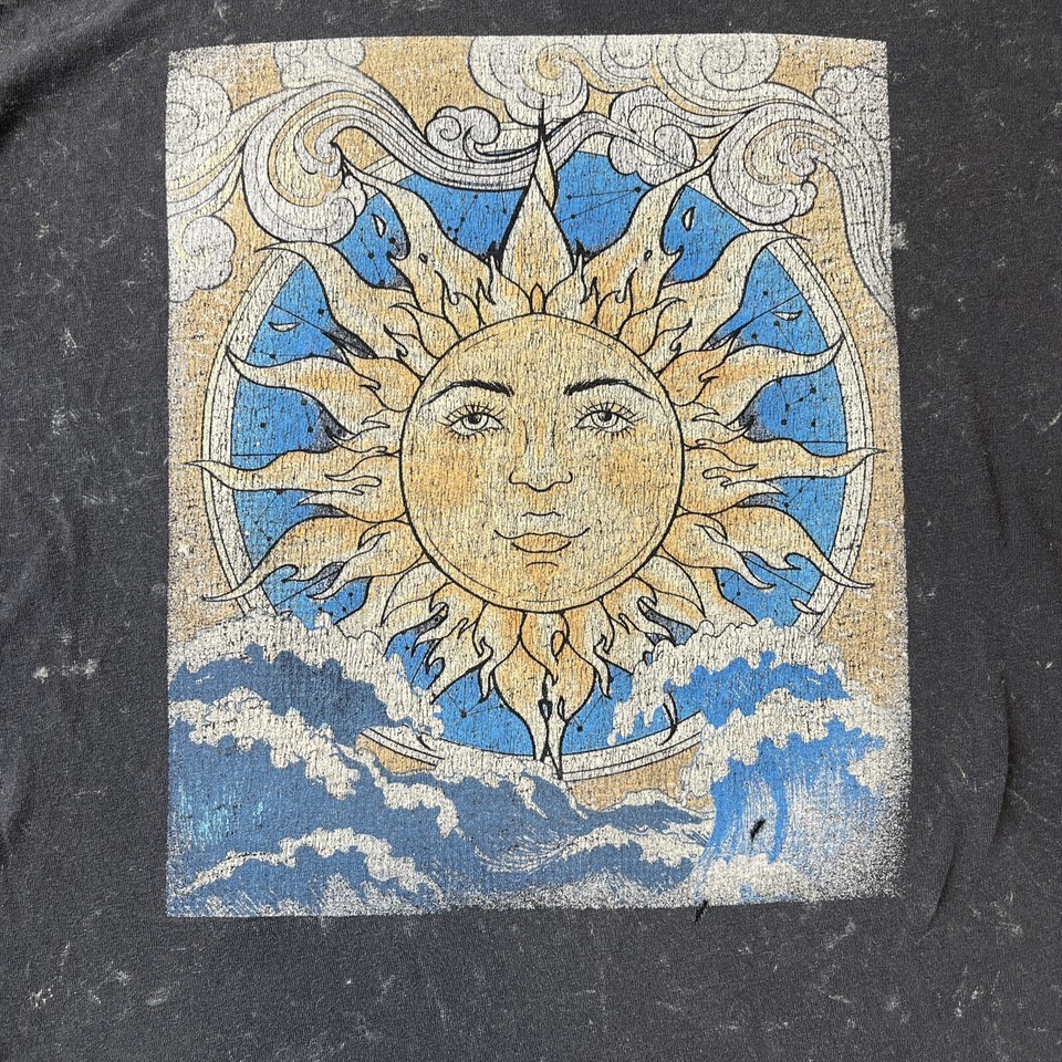 Vintage Y2K Mystic Sun Shirt Gypsy Waves Retro Clouds Black Grey Medium Read!