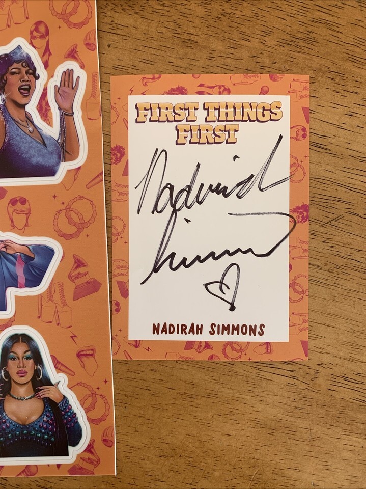 First Things First Nadirah Simmons Sticker Sheet And Signed Bookplate