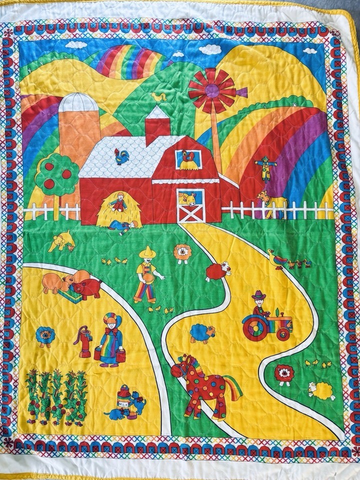 Vtg Baby Crib Quilt Blanket Rainbow Farm and similar items