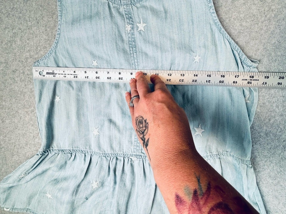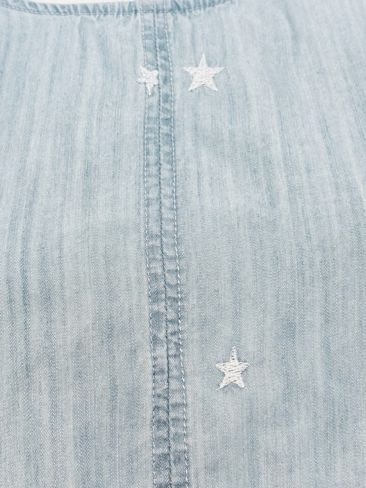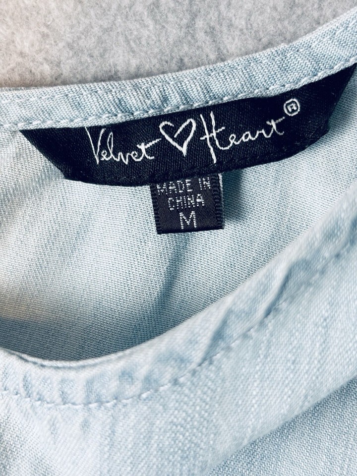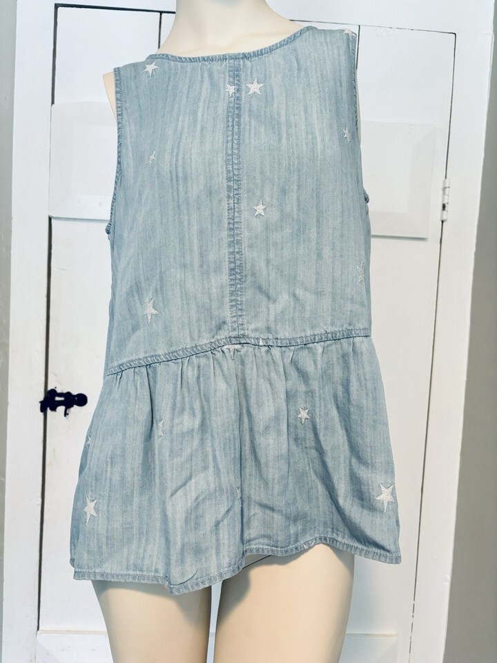 Velvet Heart Peplum Tank Top Light Blue Chambray White Embroidered Stars Medium