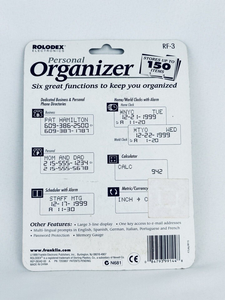Vintage 1999 Rolodex Electronic Personal Organizer RF-3 - Franklin - New!