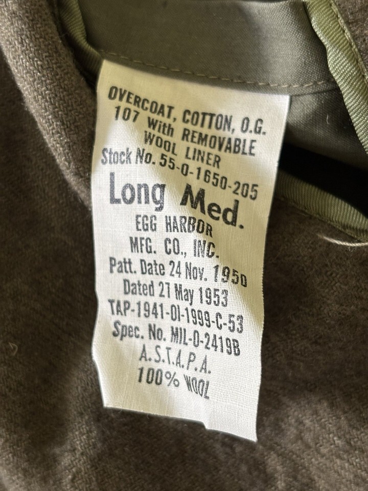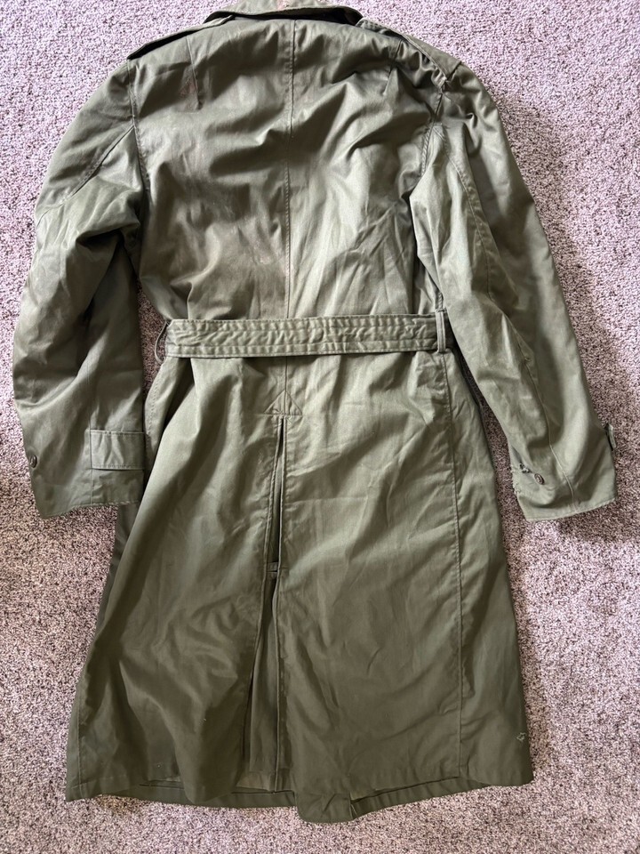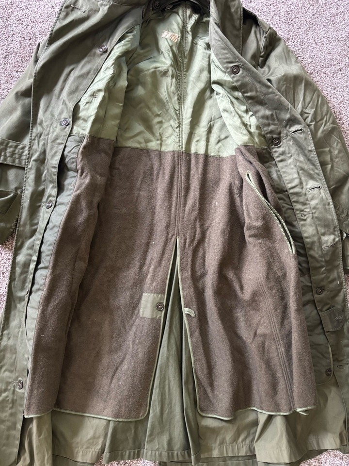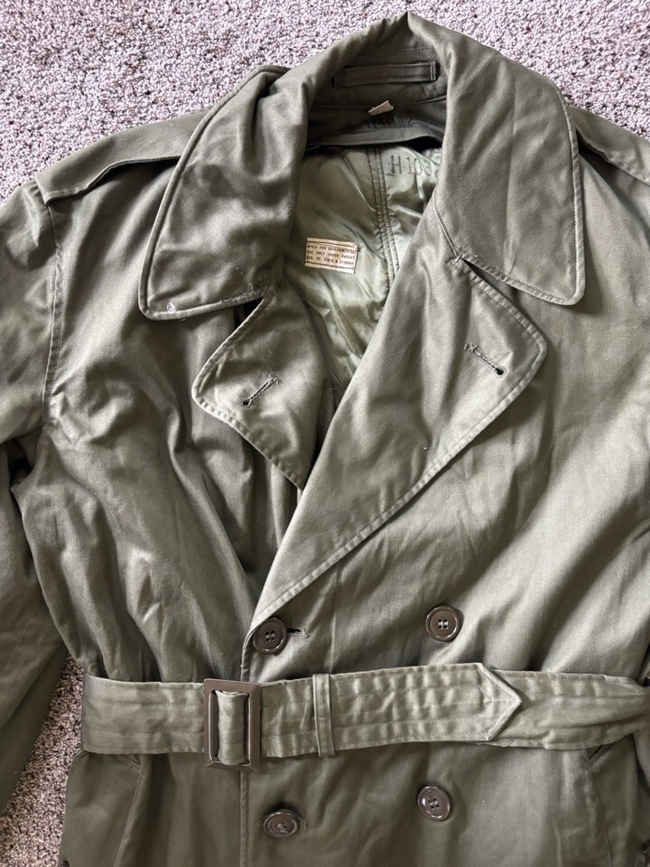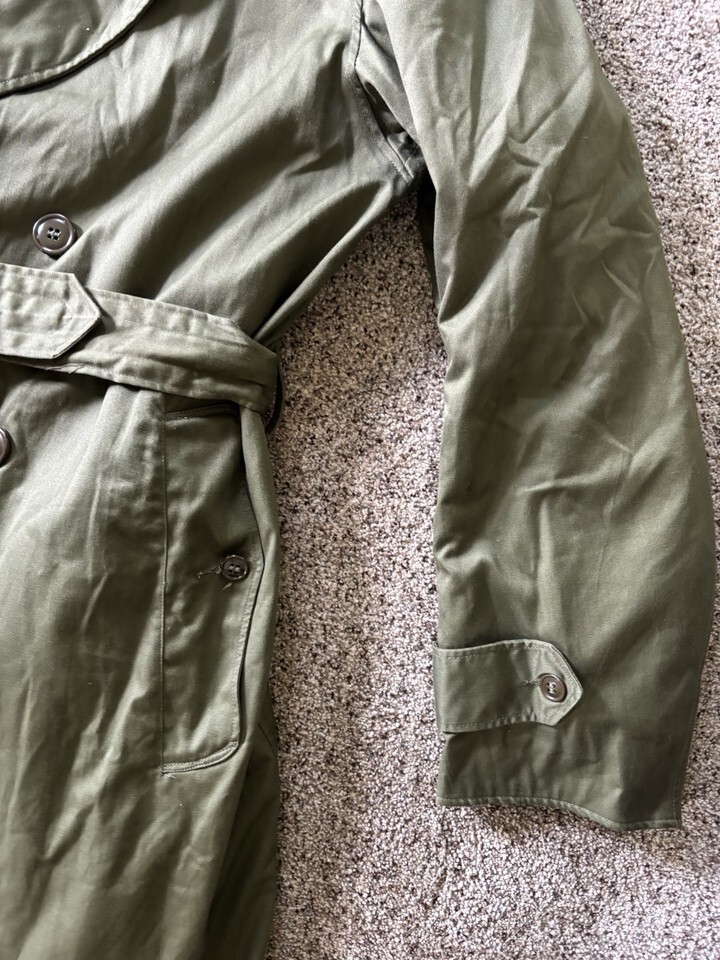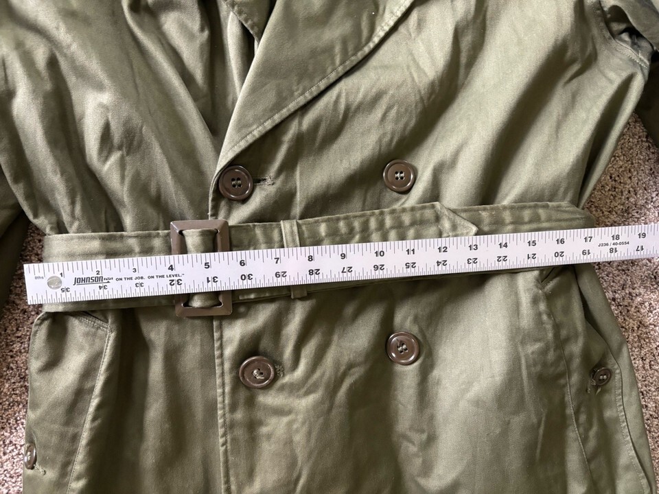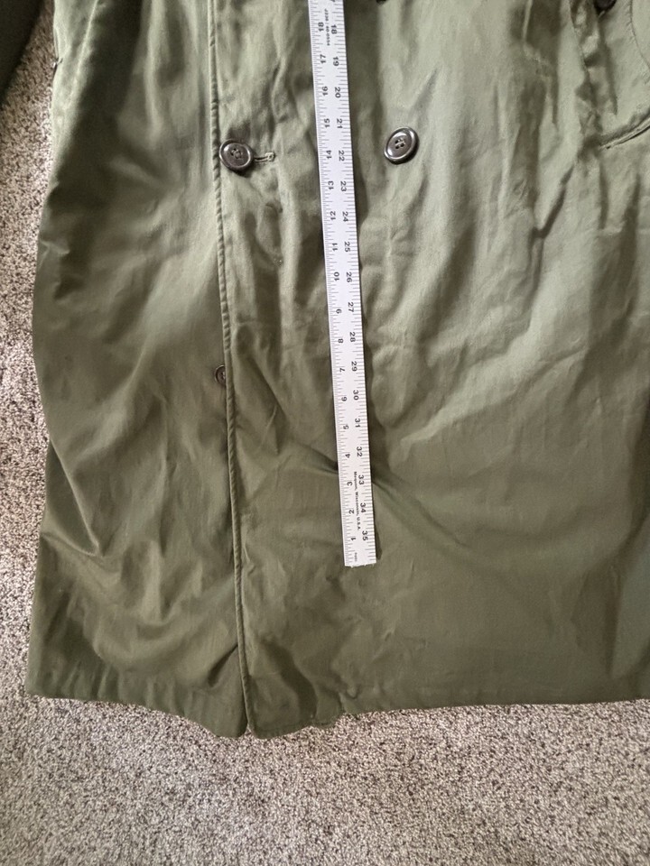 Vintage 50?s US Military Green Trench Coat Removable Wool Liner Long Medium
