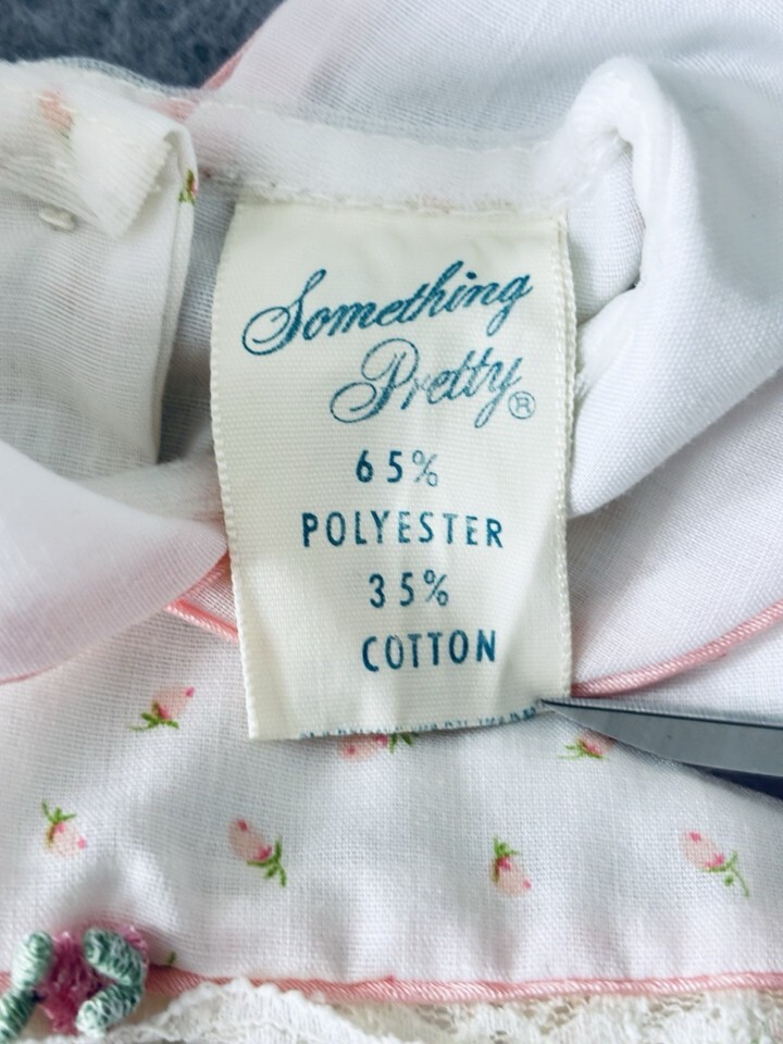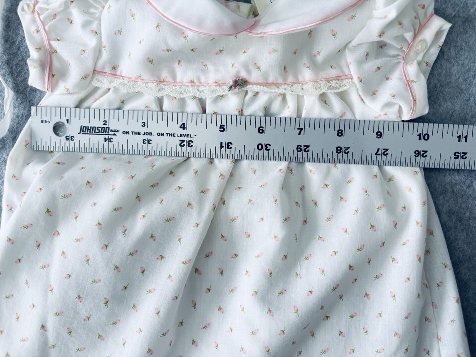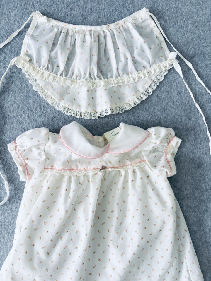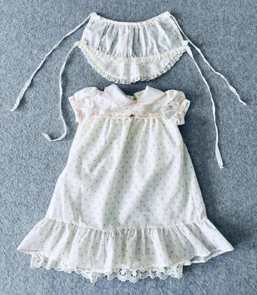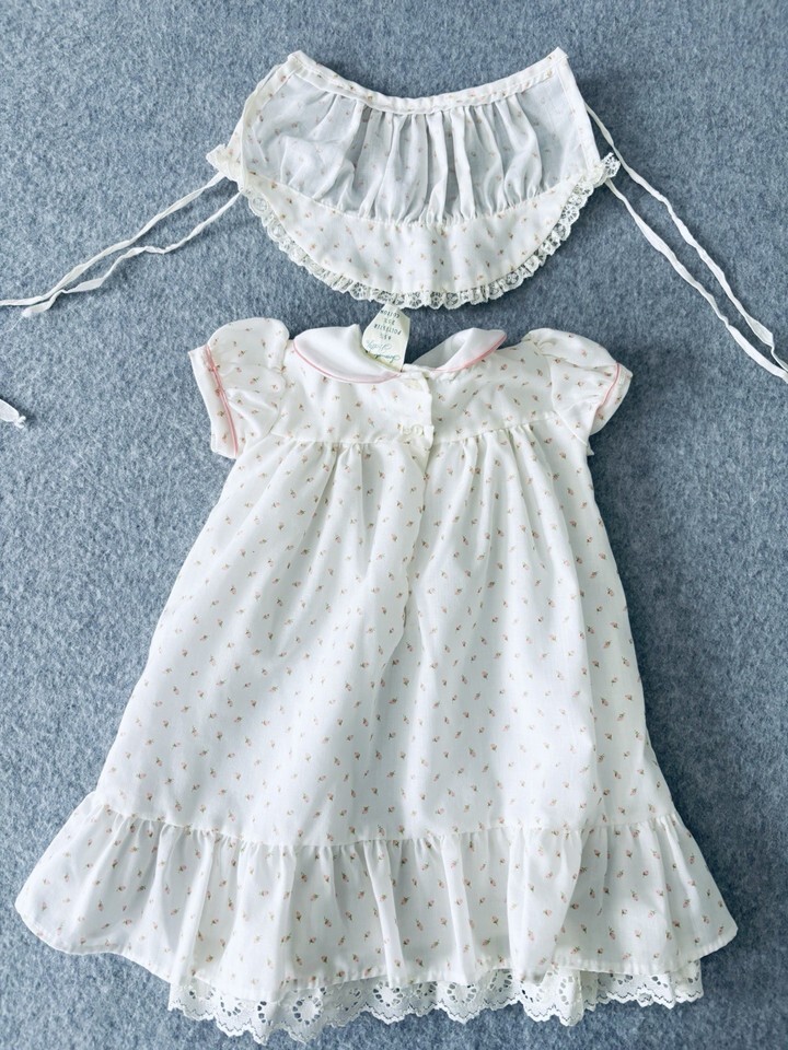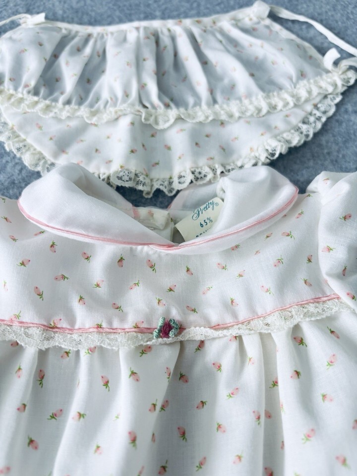 Vintage Something Pretty Pink Rosebud Lace Girls Dress Bonnet Infant Newborn