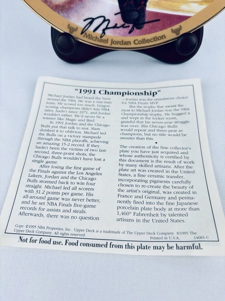 Original Michael Jordan "1991 Championship" Collector Plate Bradford Exchange
