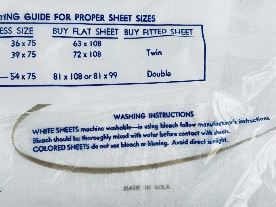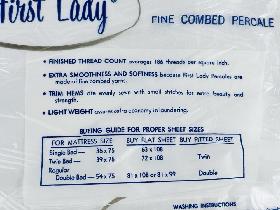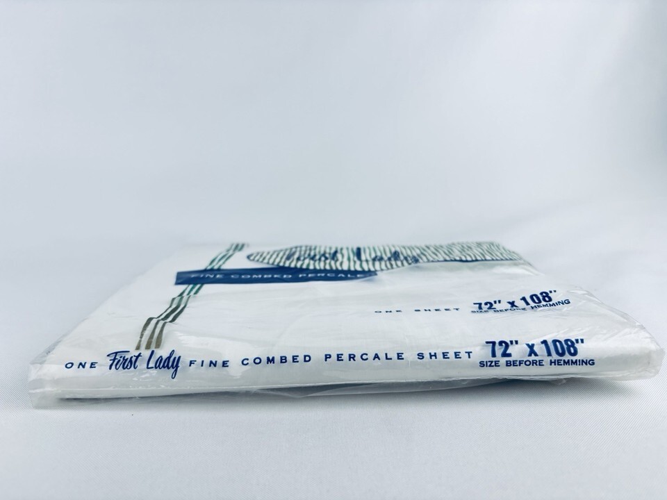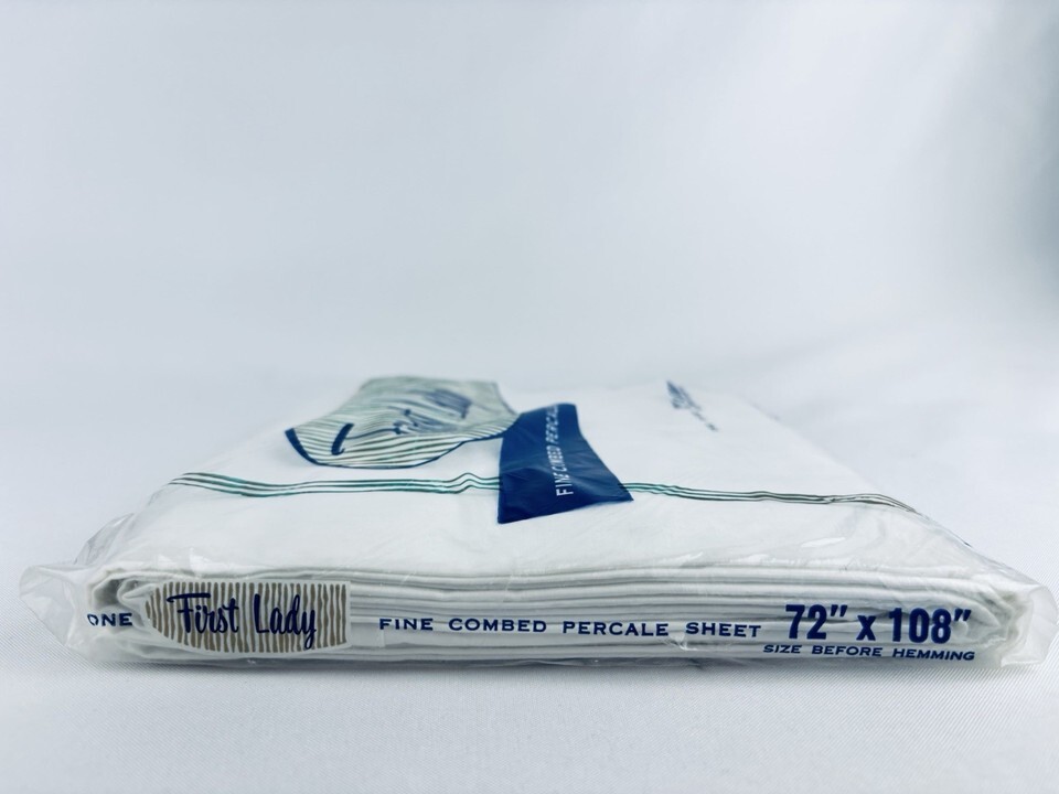 First Lady Fine Combed Percale Twin Bed Flat Sheet 72 x108 White Vintage