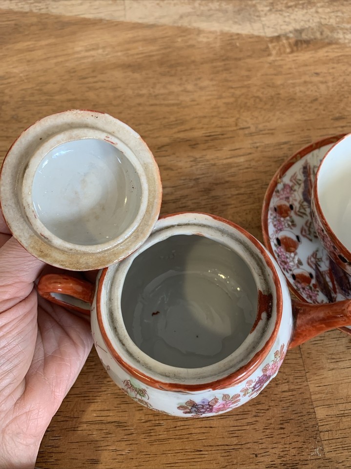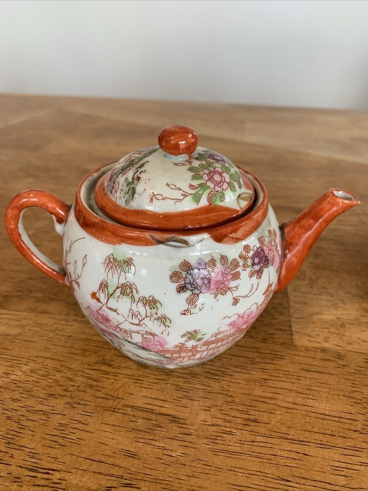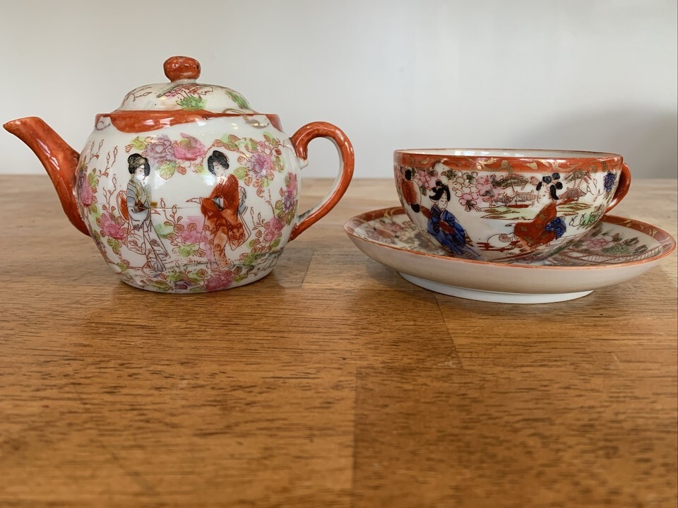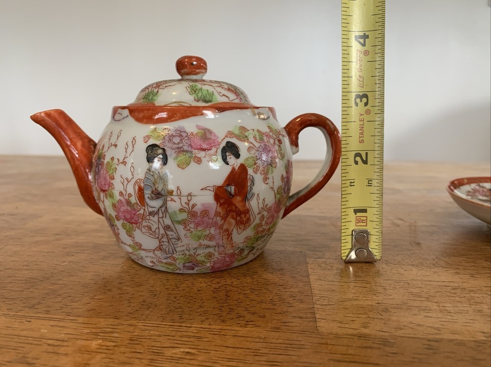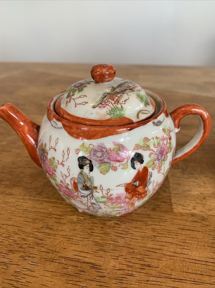 Vintage Collectible Asian Japan Geisha Girl Hand-Painted Porcelain Teapot Teacup