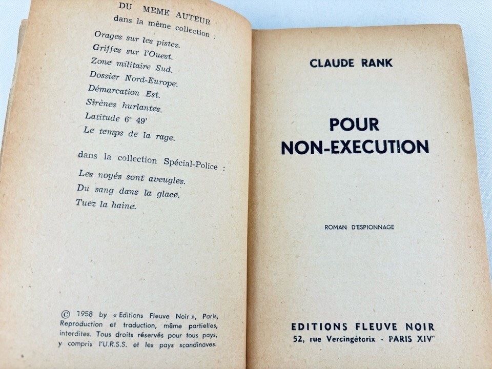 1958 French Paperback - Pour Non Execution - Fleuve Noir - Claude Rank -book