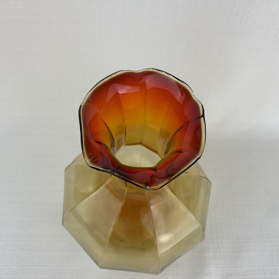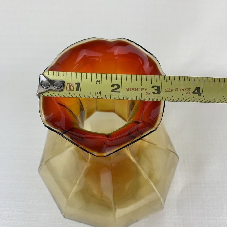Vintage Tiara Amberina Vase 8" Tall Ruffled Glows Orange MCM Retro Brown 70’s