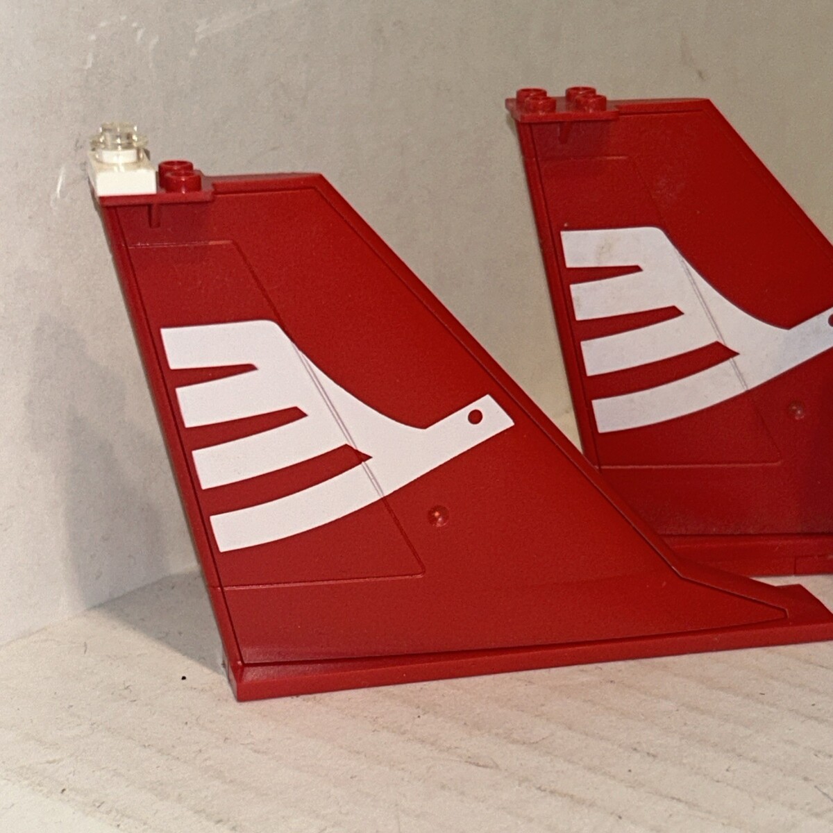 LEGO City Red Blue Plane Tail 14 x 2 x 8 White Airline Bird Pattern 54094 x3 C3. Condition is Used. Shipped with USPS Ground Advantage.