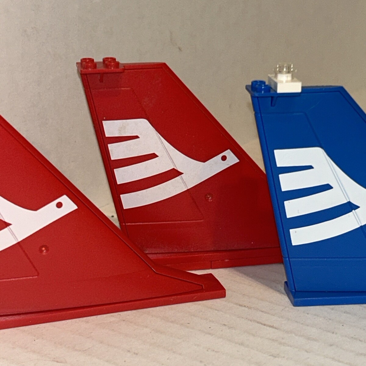 LEGO City Red Blue Plane Tail 14 x 2 x 8 White Airline Bird Pattern 54094 x3 C3
