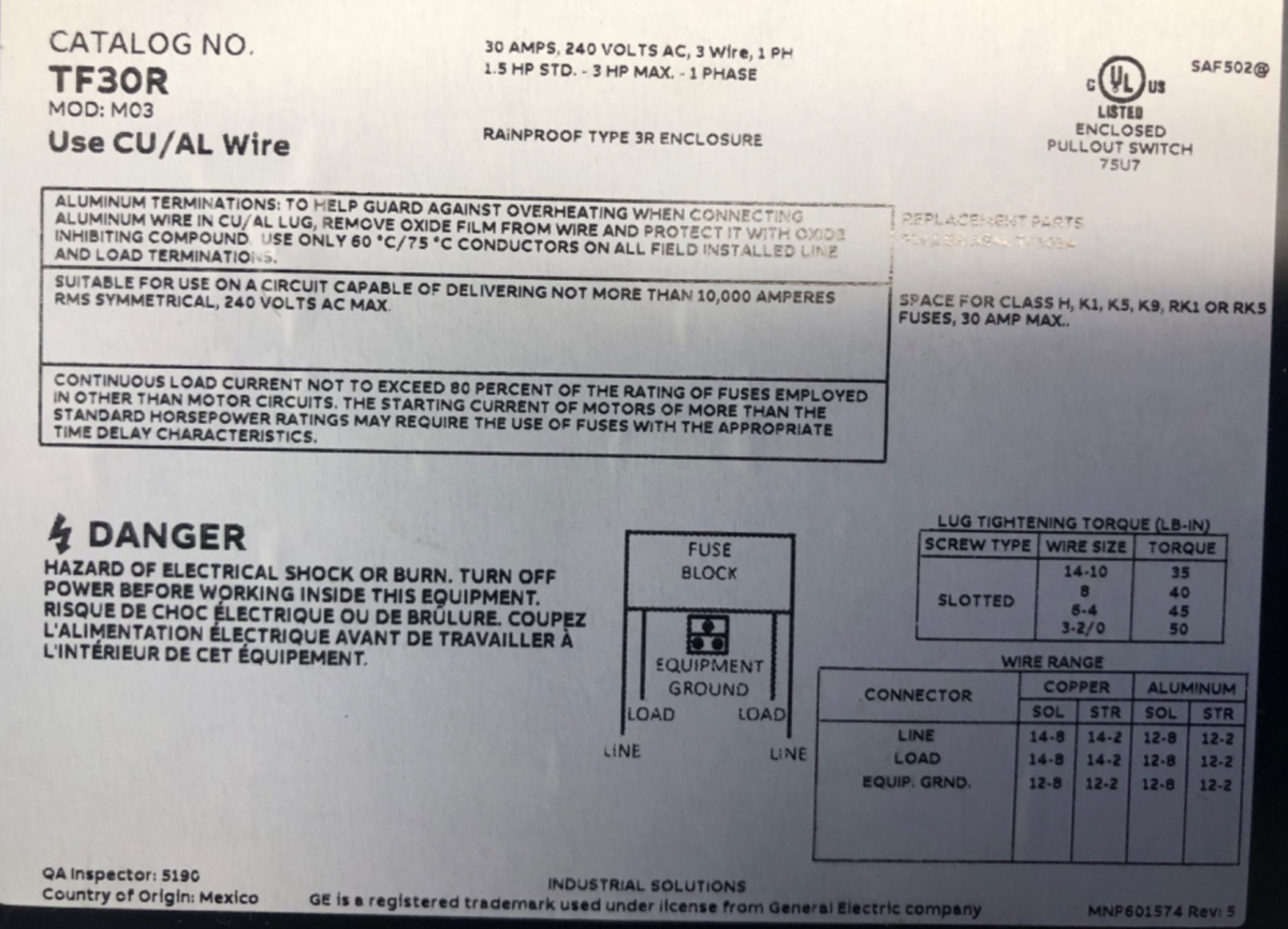 GE 30 Amp Fusible Air Conditioner Disconnect and 50 similar items