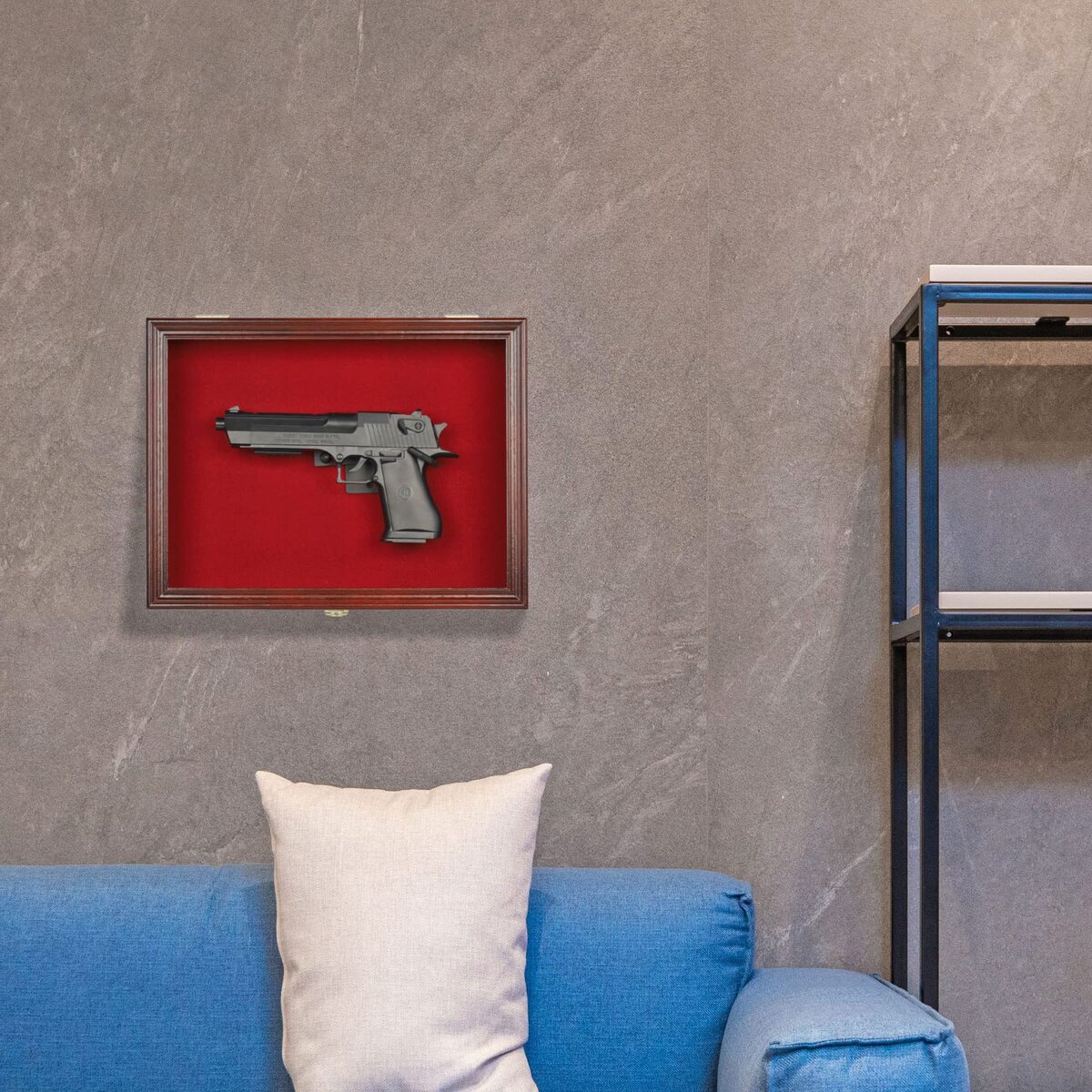 Gun Display Case Wood Handgun Pistol Revolver 98% UV Lock Shadow Box Cabinet New