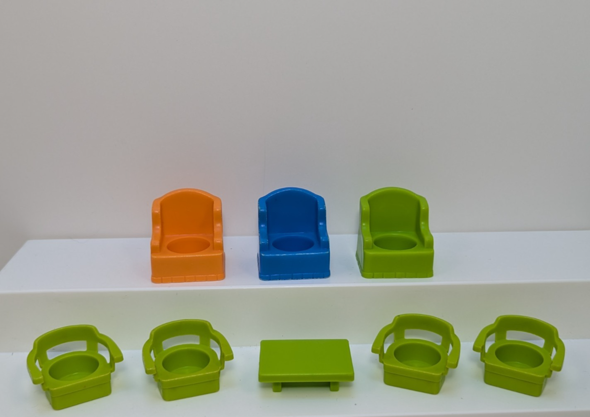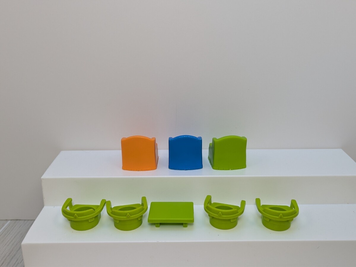 Fisher-Price Little People vintage chairs coffee table lot green orange blue