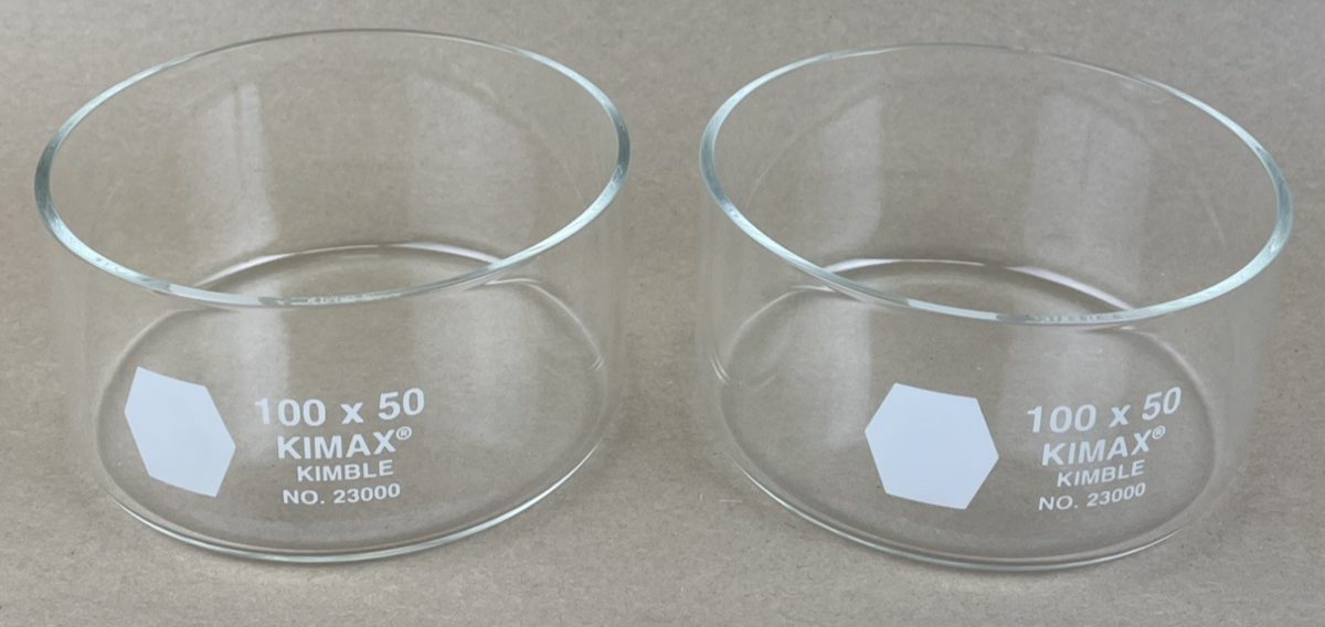 Set of 2 || KIMBLE KIMAX Crystallization Dish, 100 x 50mm, 170mL NO. 2300 10050 - NEW