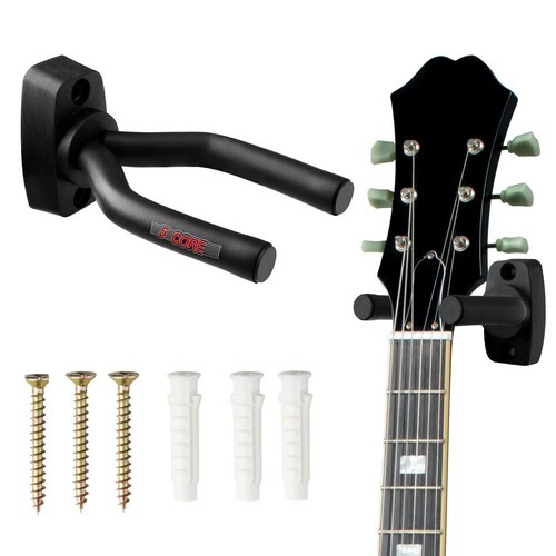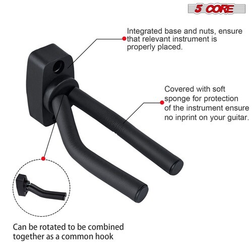 The deep cradle design prevents falls, and installation is a breeze with the included hardware. This versatile hanger suits electric, acoustic, ukulele, and bass guitars. Its sleek design complements any decor, making it a perfect addition to your room or studio. 5 Core guitar wall hanger is reliable, elegant, and secure.