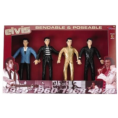 Take home this Elvis Presley Bendable Figures Boxed Set today! "1956,1960,1968,1970"