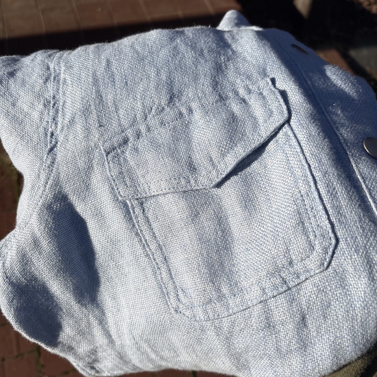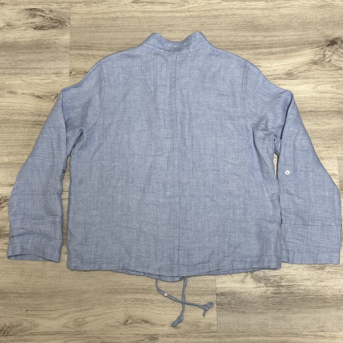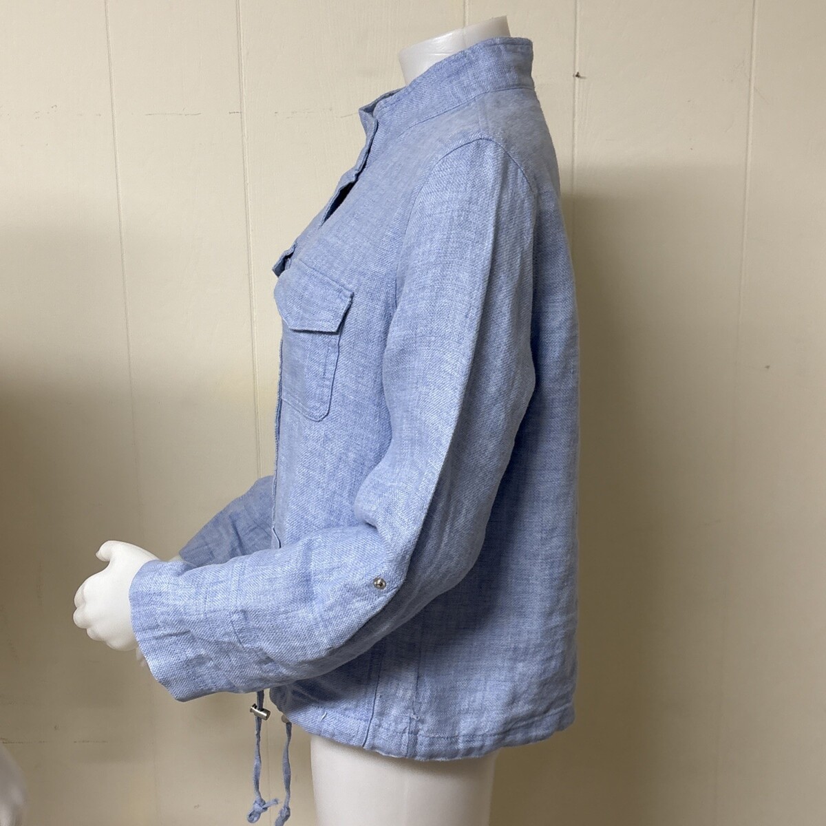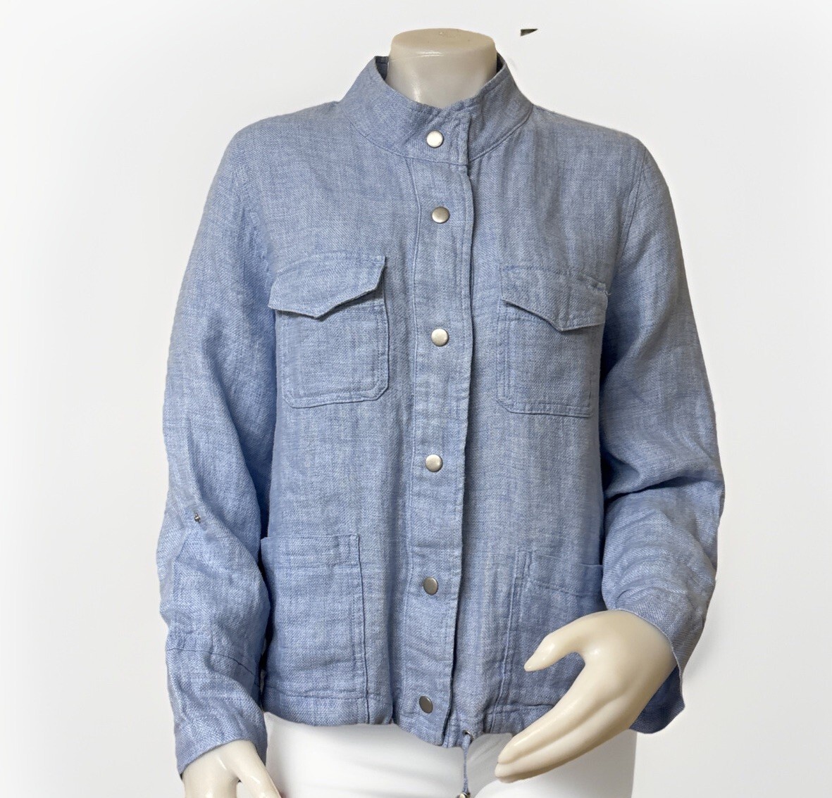 C C California 100% Linen Jacket Women's Large Blue Snap Front Unlined Utility