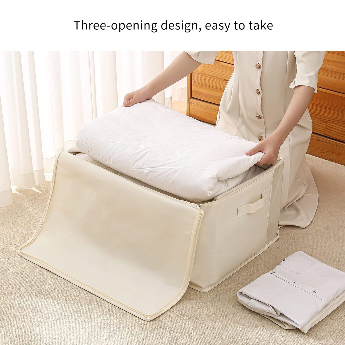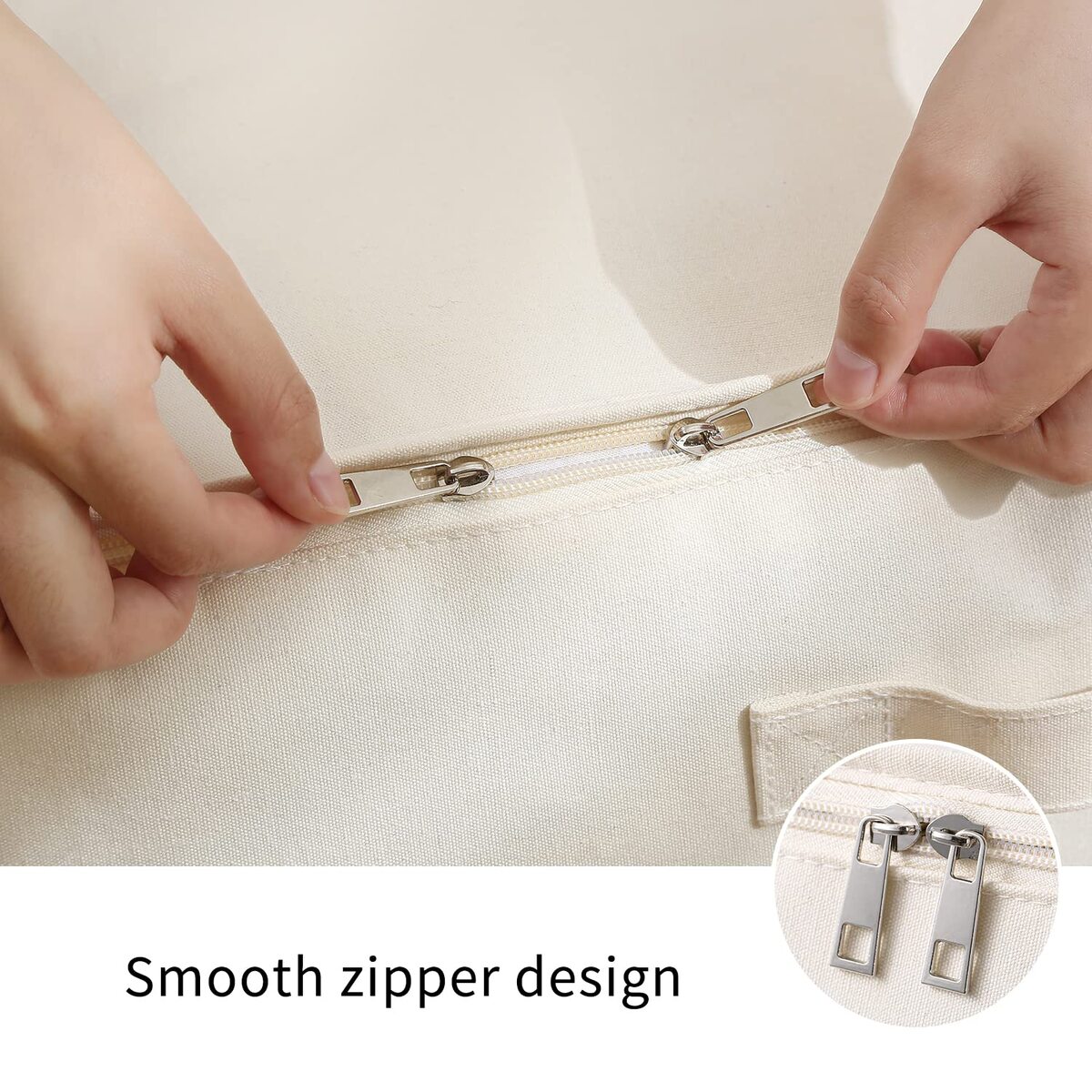 ?Canvas Construction?Made of breathable canvas fabric with a clear window inset to easily view stored items, protecting your wool, cashmere, silk, or other clothes fresh, aired, and dust-free,?Convenient Storage?The modular shape of the bag makes it easy to fit in a closet or on a shelf, and it works well for storing items like extra bedding, clothing, and seasonal items.,?Water-resistant?Cotton canvas fabric with PE interior lets the storage bag make a balance between breathable and water-resistant. Perfect for storage beddings, and clothing. Such as Comforter, Pillows, Down Jackets, and Sweaters.,?Foldable Design Handles?Strong handles allow for convenient access and portability; can be folded flat and put away when not in use. Our storage is easier to put in with the duvets, quilts, or seasonal clothing and carry away.,?Hold its shape?Thanks to the thicker cotton fabric, our storage bag is a little sturdy than others. It will not collapse but hold its shape if they aren't filled full. Vailando Closet storage bag helps keep items safely stored, freeing up extra closet and drawer space.