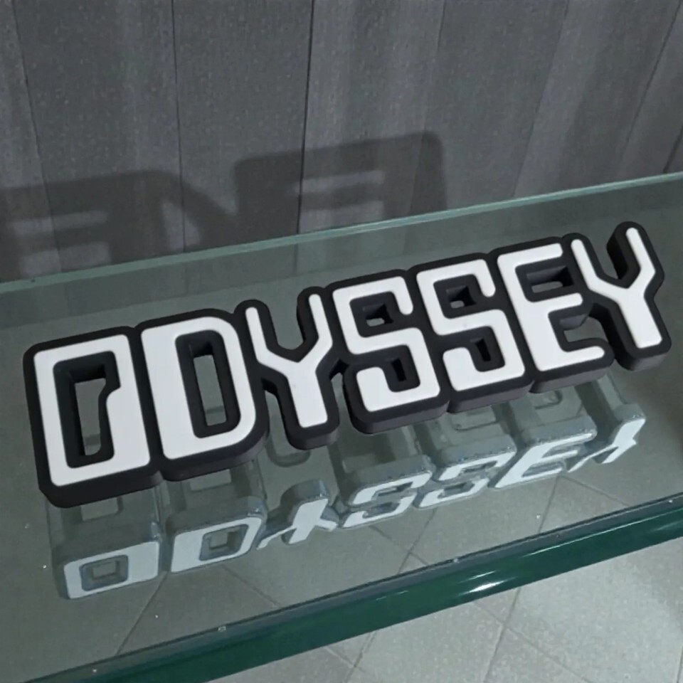 Enhance the look of your vehicle with this stylish Odyssey 3D raised letter emblem. This high-quality badge features bold white lettering on a black background, creating a sharp and contrasting appearance. The dimensional design adds a premium, custom touch perfect for a rear trunk or tailgate. Ideal for replacing a worn or damaged original nameplate, this emblem is in excellent condition and ready for installation.