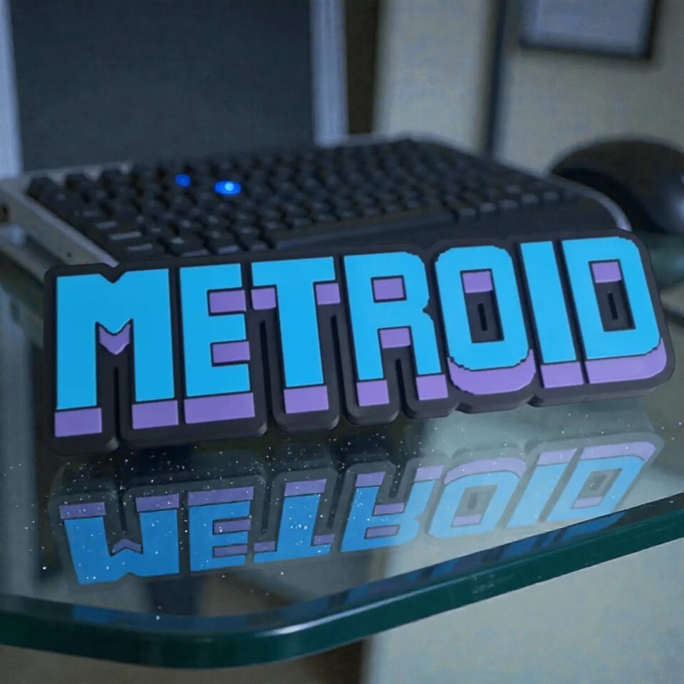 Metroid Nintendo 3D Printed Logo Sign Retro Pixel Art Video Game Desk Decor