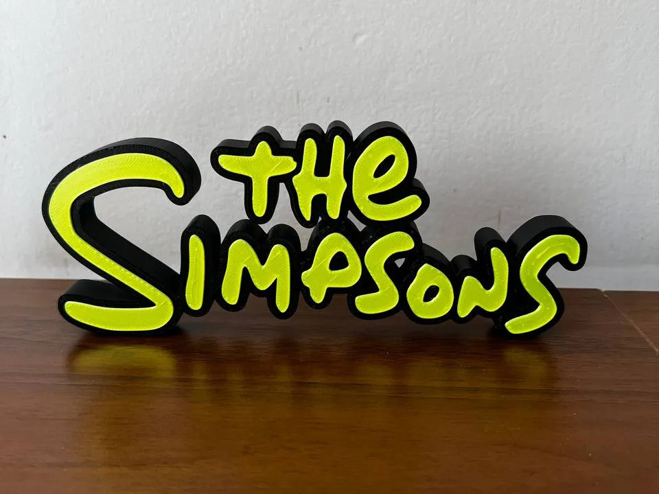 Showcase your love for the iconic animated series with this vibrant 'The Simpsons' logo sign. This freestanding display piece is 3D printed, featuring the classic show title in bright yellow lettering against a black base. Its design makes it a perfect addition to any desk, shelf, or entertainment center for a touch of Springfield. An excellent collectible for any fan, this sign is ready to display right out of the box.