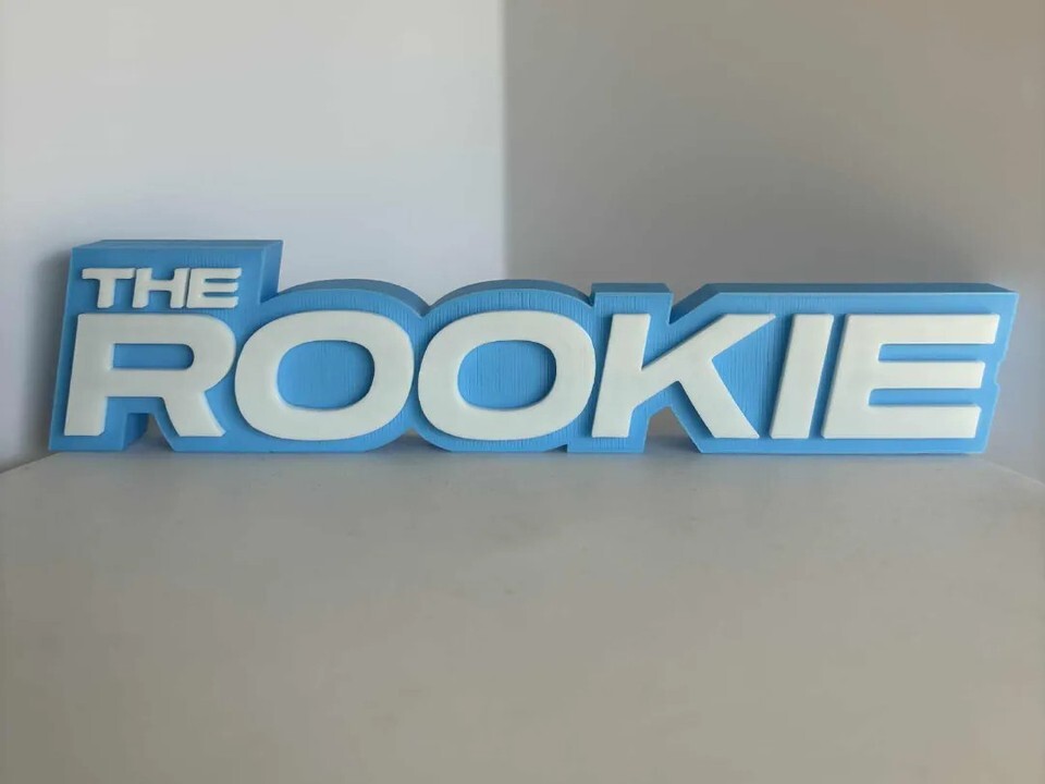 Show your love for the popular TV series with this vibrant 'The Rookie' logo sign. This piece is 3D printed, featuring a bold light blue base with crisp white raised lettering for a standout effect. Perfect for displaying on a shelf, desk, or as wall art, it makes a great addition to any fan's collection, man cave, or entertainment room. It's an excellent gift for any fan of the show, offering a unique piece of memorabilia.