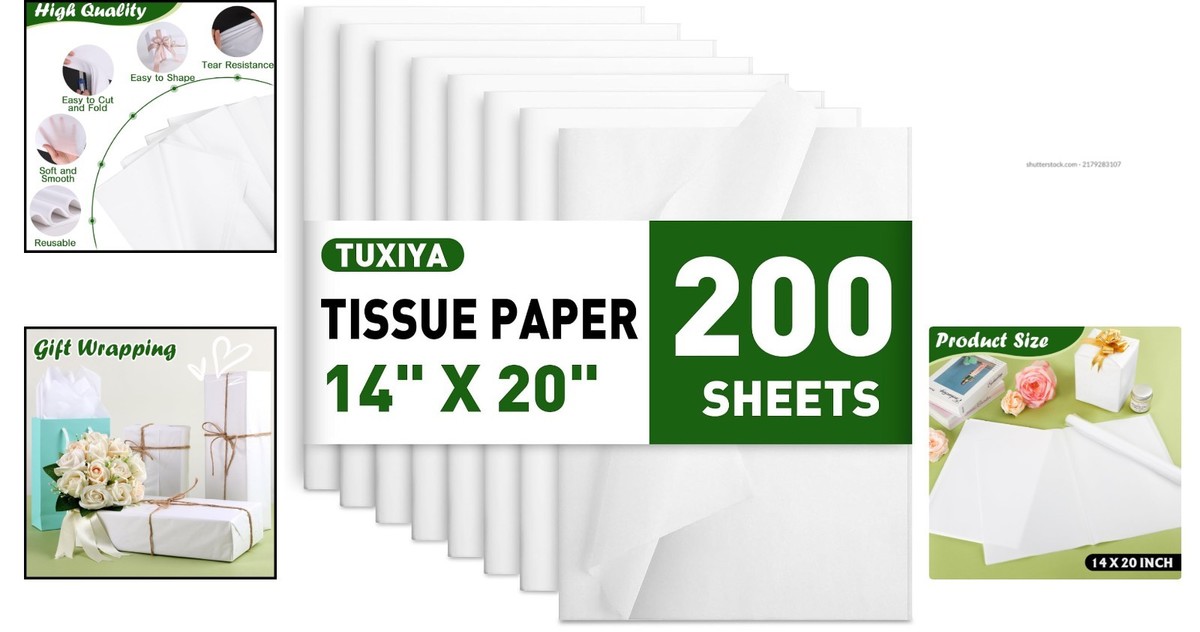 Elegant Translucent White Tissue Paper, 200 Sheets – 14x20 for Crafts & Events