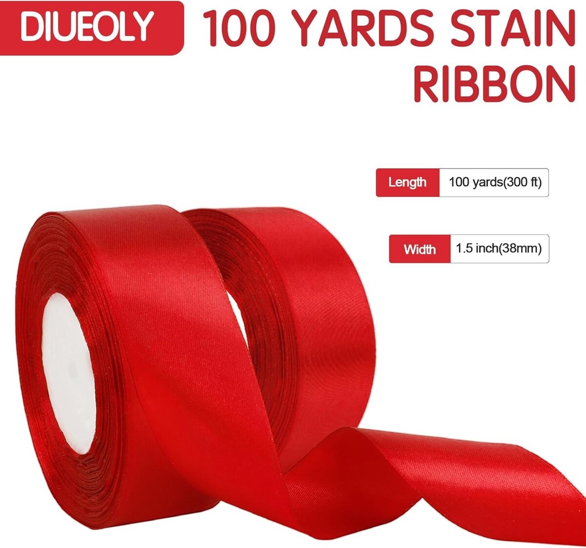 Versatile 100 Yards Red Polyester Ribbon - Ideal for Crafts and Gift Wrapping