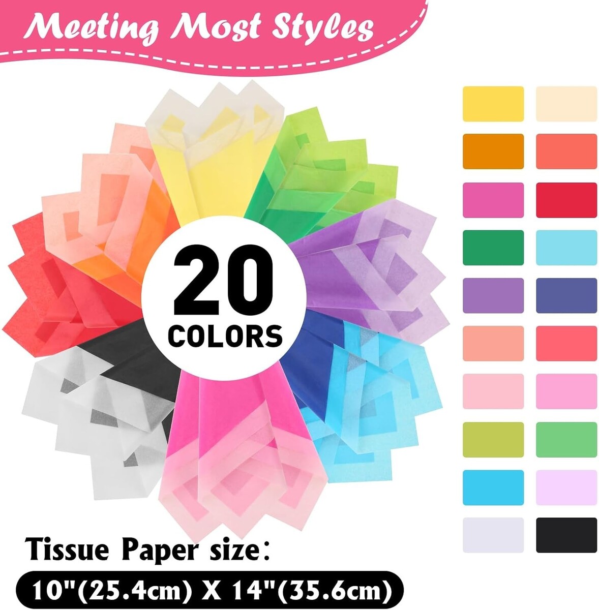 Transform your gifting and decor with our exquisite 10"x14" Colored Tissue Paper Set. With a wide array of vibrant colors and substantial quantity, you'll find just the right paper for any celebration, project, or shared sentiment. This high-quality, versatile tissue paper is your go-to choice for hassle-free creative adventures. Elevate your wrapping game and keep your crafting supplies well-stocked. Truly, an indispensable addition to your home!