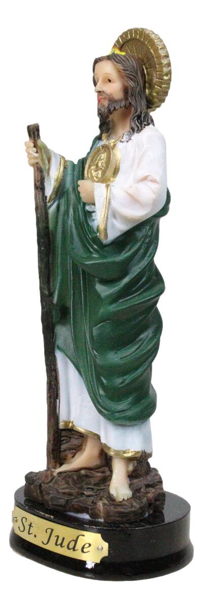 ? Honor the patron saint of hope and impossible causes with this beautifully detailed Saint Jude Thaddeus the Apostle Figurine. Featuring the Holy Spirit's flame above his head and the radiant sun border medal upon his chest, this reverent design symbolizes divine guidance and unwavering faith. Set upon a sturdy base accented with an elegant brass name plate, this piece makes a distinguished addition to any home altar, prayer corner, or devotional collection.