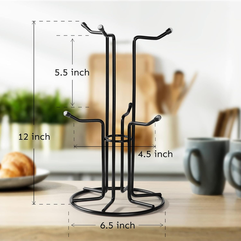 Mug Tree for Large Cups, Counter Coffee Mug Holder with 6 Hooks, Metal Coffee Cu