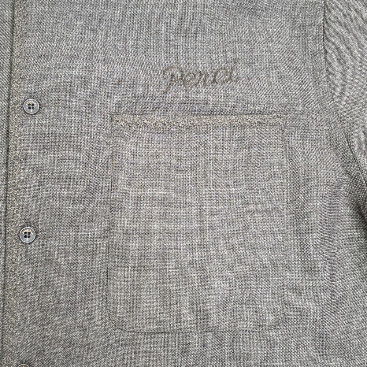 Diamond-patterned embroidery frames the edges of a roomy wool-blend shirt that's sized for layering and styled with a flat hem designed specifically to be left untucked. Front button closure Spread collar Long sleeves with button cuffs Chest patch pocket 50% wool, 50% polyester Machine wash, line dry. Imported