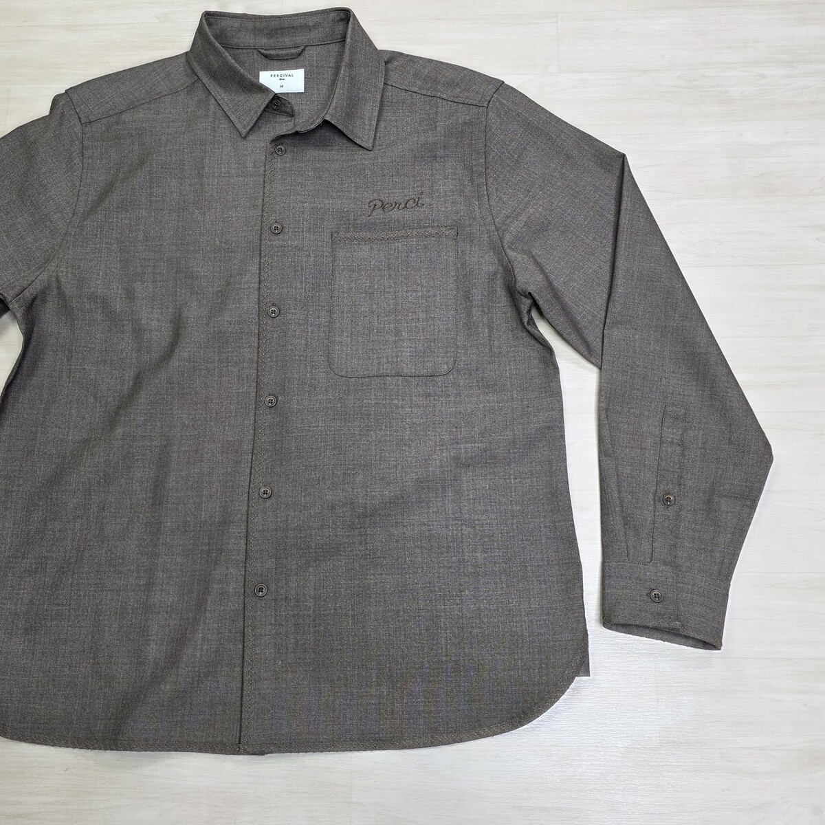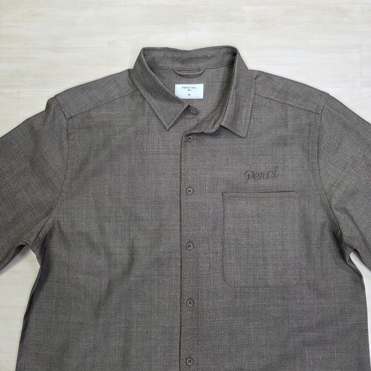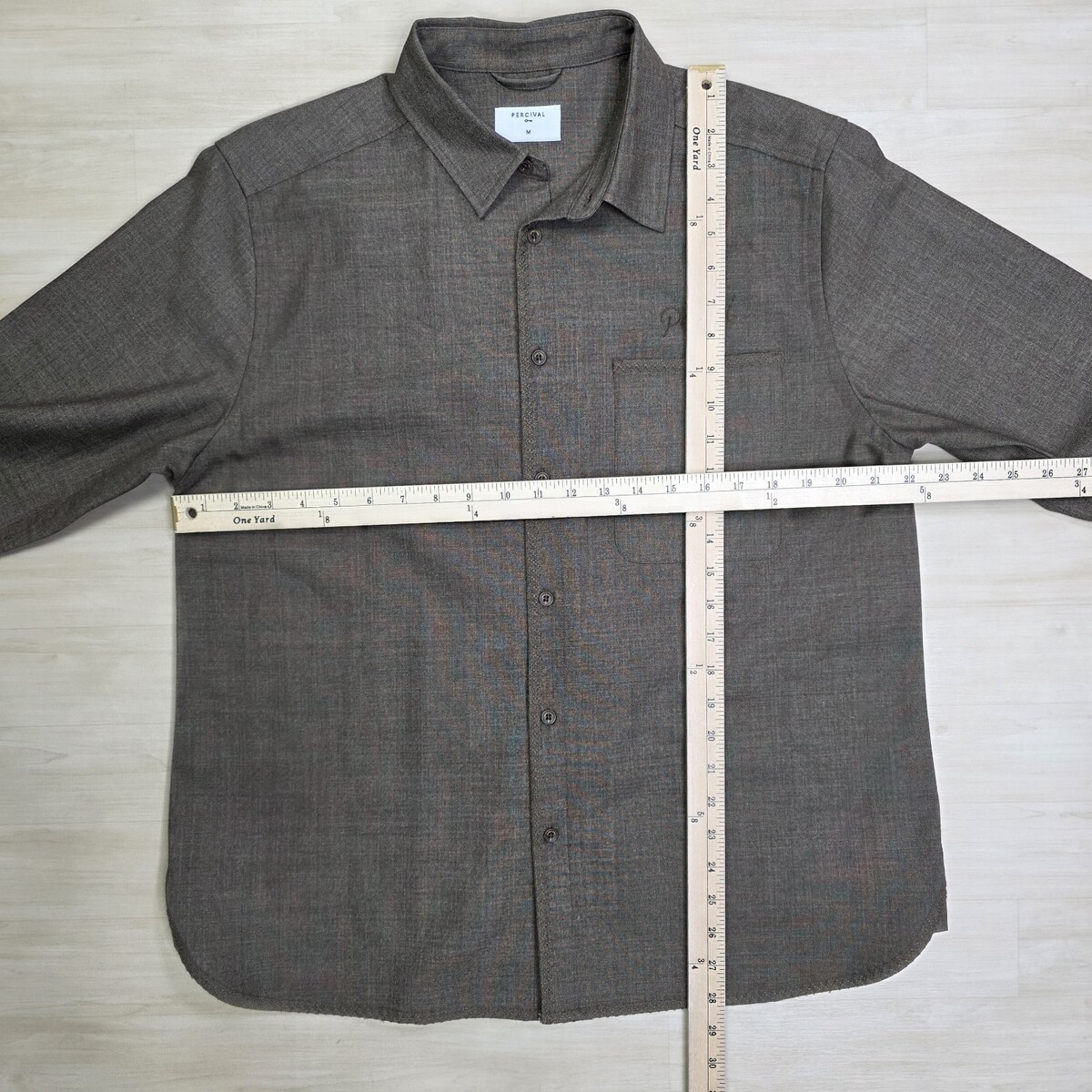 Percival Auxiliary Everyday Wool Blend Button Up Shirt Brown Tan Size Medium