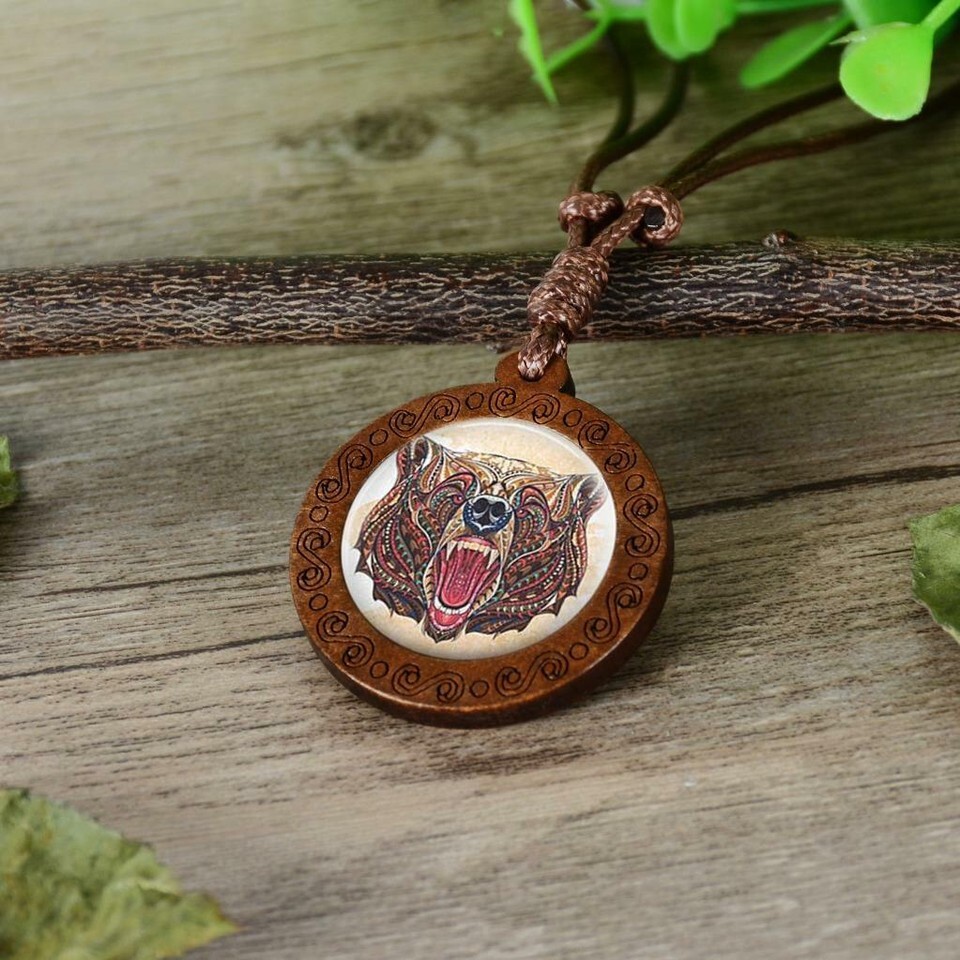 Bear Head Wood Prism 3D Like Animal Necklace and 49 similar items