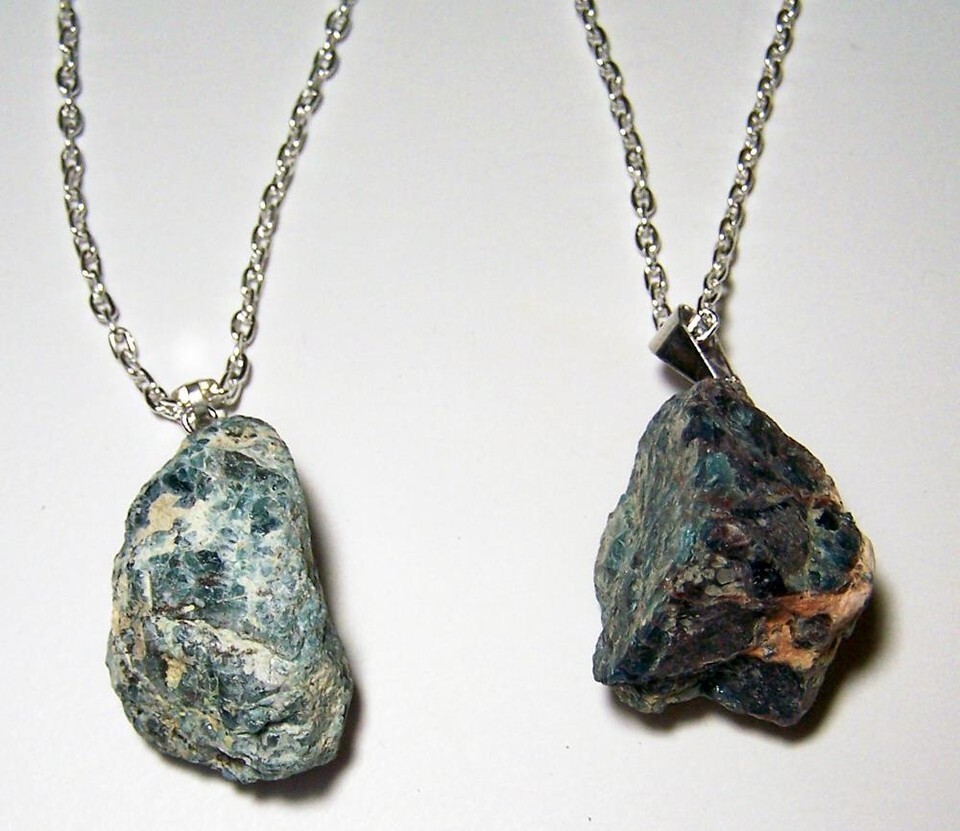 2 APATITE ROUGH NATURAL MINERAL STONE PENDANT 18 in SILVER LINK CHAIN NECKLACE