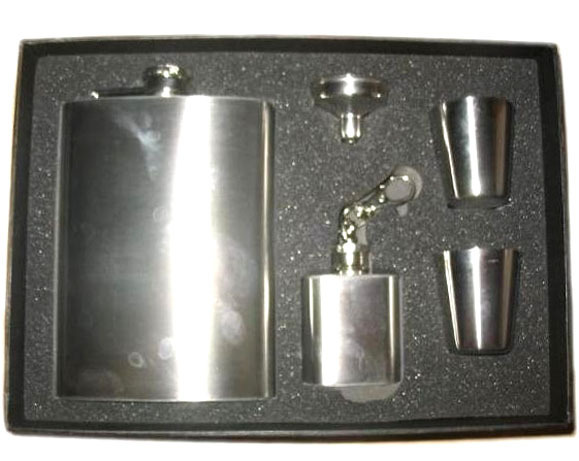 STAINLESS STEEL FLASK & 2 SHOT GLASS SET WITH KEY CHAIN HIP drinking flasks NEW