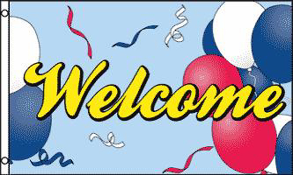 2 WELCOME BALLOONS 3X5 FLAG sign FL428 NEW signs window