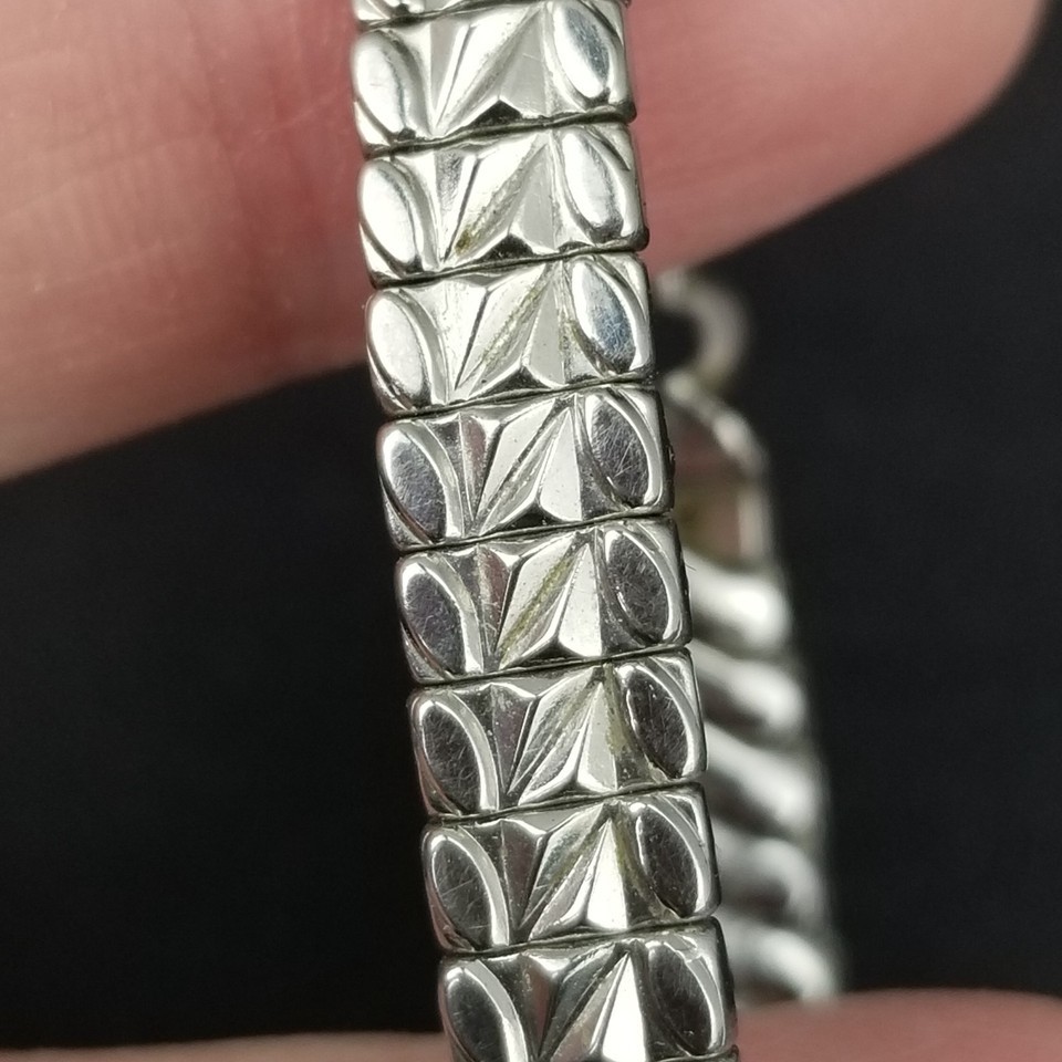 The band works as it should.Light signs of age cosmetically. The glass has no cracks or chips. Time can be set. Only runs for a few seconds when bumped...may need oiled or light maintenance. SEE PICTURES.