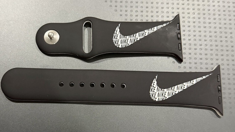 The Nike Swoosh Pattern Printed Silicone Apple Watch Band is a stylish and durable accessory designed specifically for Apple Watch models ranging from 42mm to 49mm. Made with high-quality silicone material in a sleek black color, this strap is compatible with various Apple Watch series and editions, including the Apple Watch Hermes. The Swoosh pattern adds a sporty and trendy touch to your smartwatch, making it a fashionable choice for those who appreciate both style and functionality. Made in China, this Apple Watch band is a must-have for those looking to customize and enhance their smartwatch.