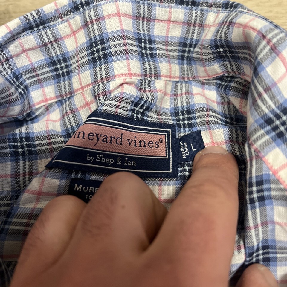 Vineyard Vines Murray Shirt Plaid Button Down Size Large Blue White Pink